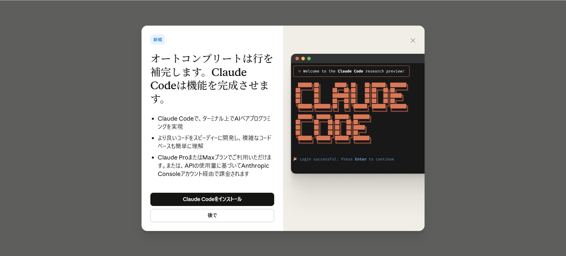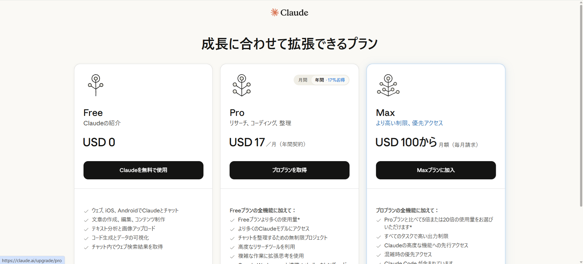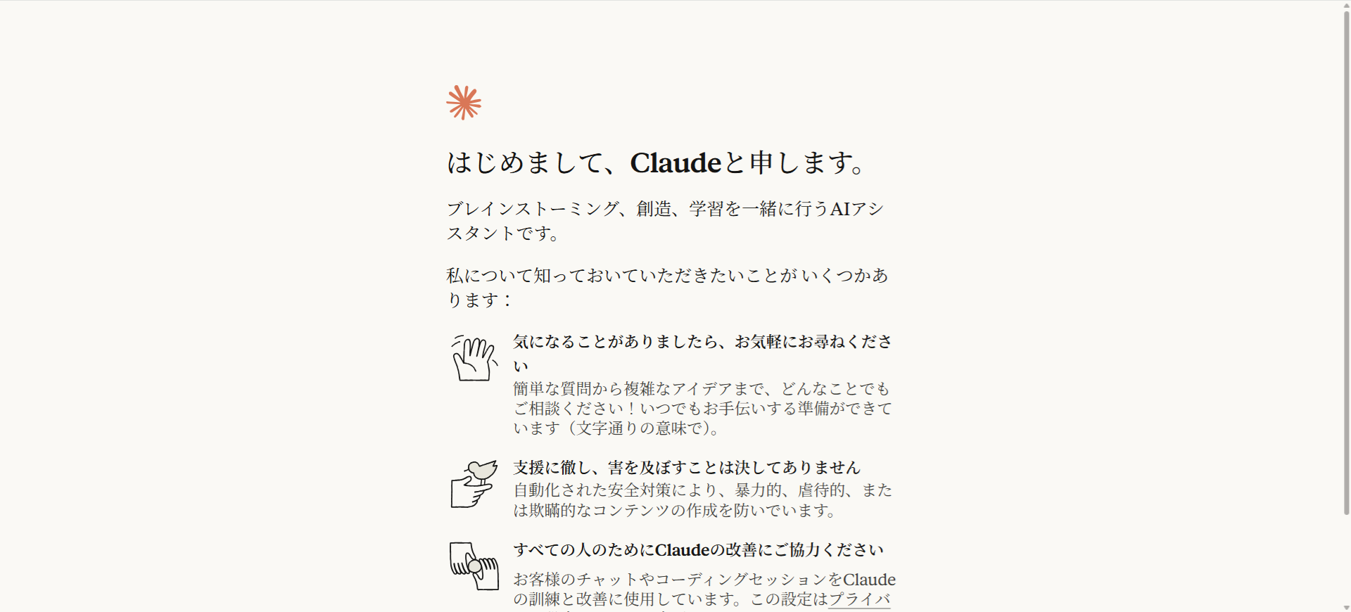 Anthropicの利用規約および利用規定に同意し、18歳以上であることを確認します。にチェックを入れて続けるをクリックします。