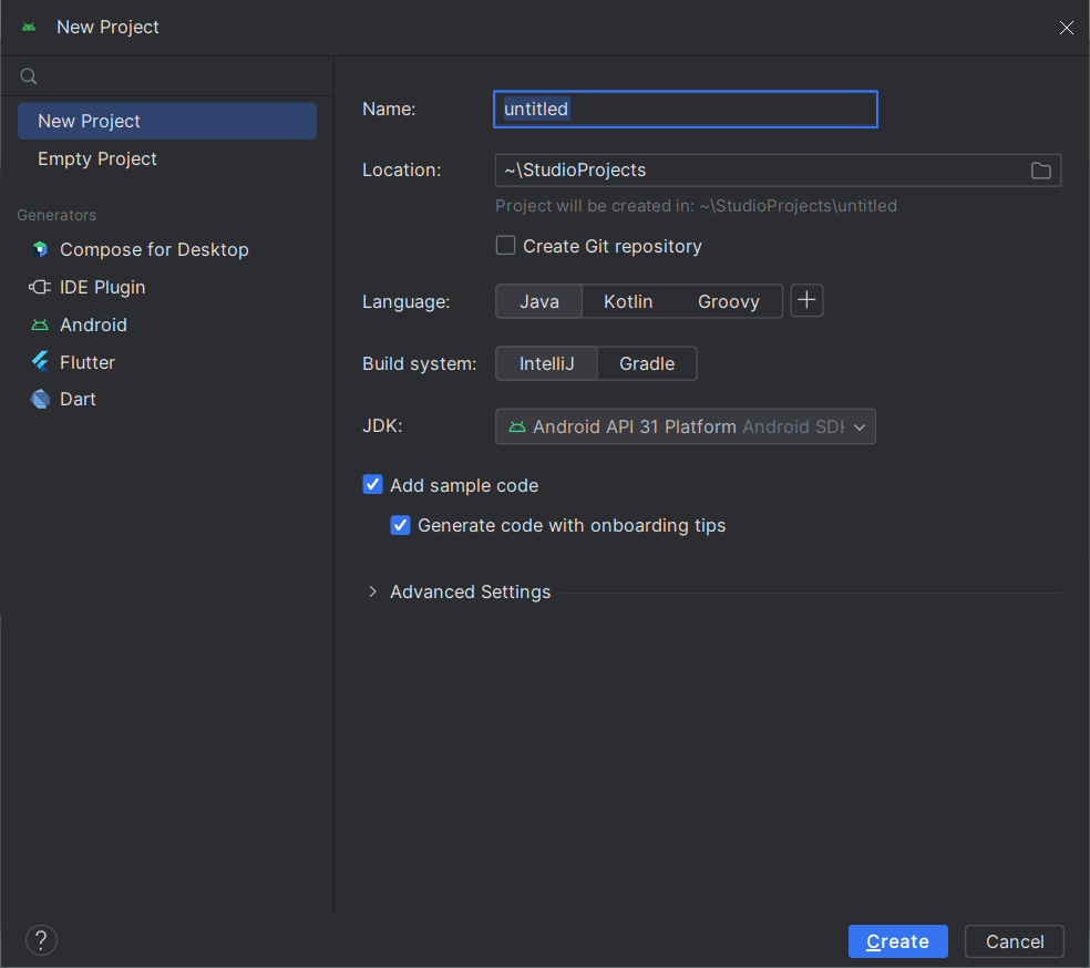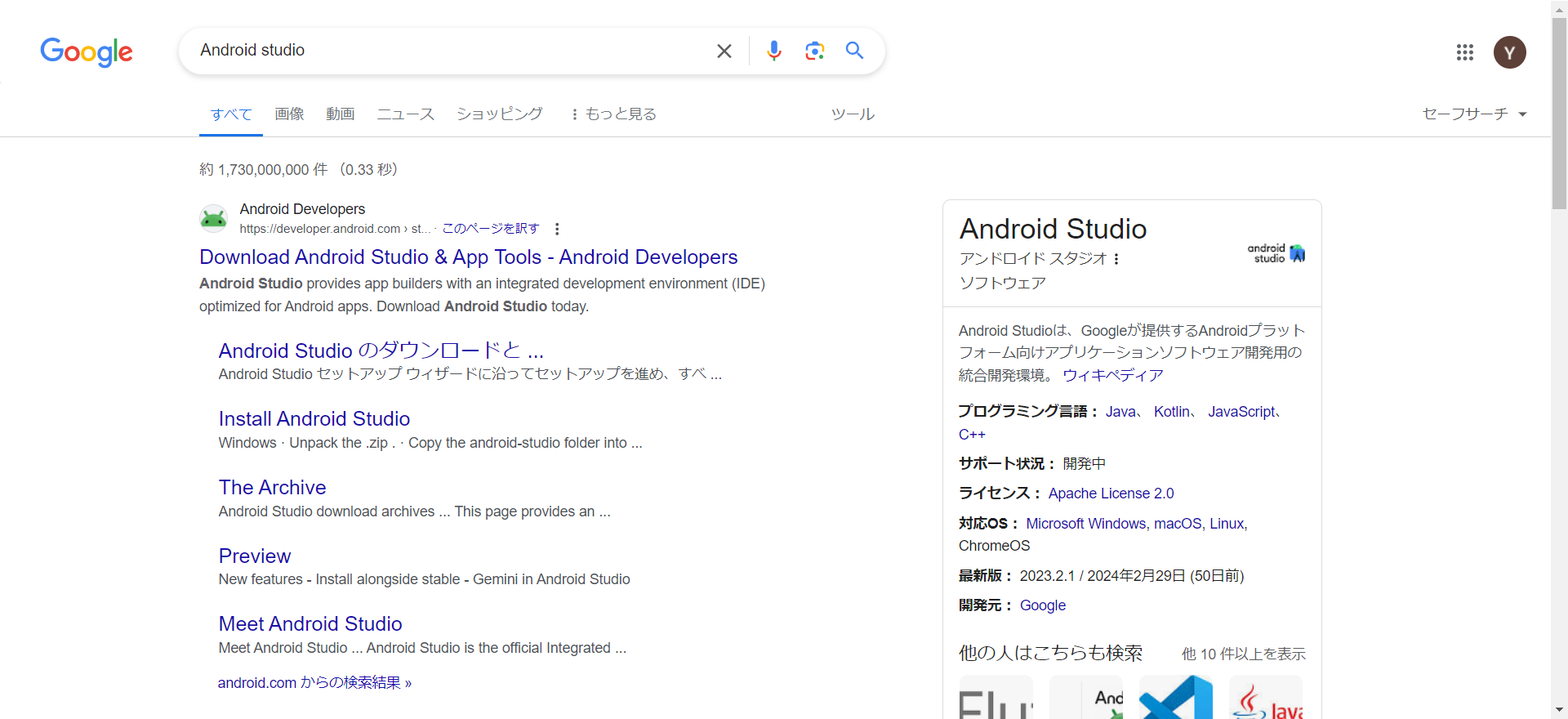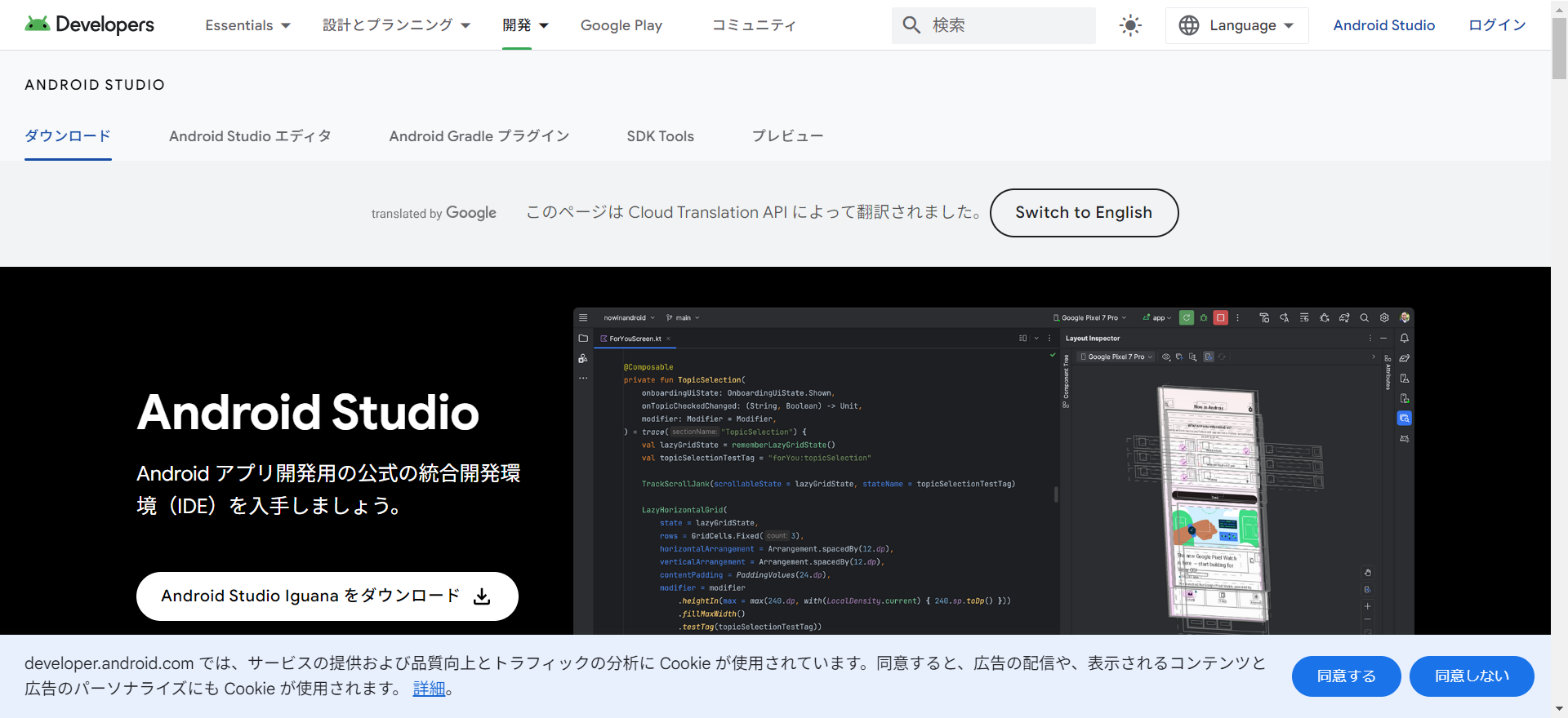 「Android Studio Iguanaをダウンロード」をクリックします。