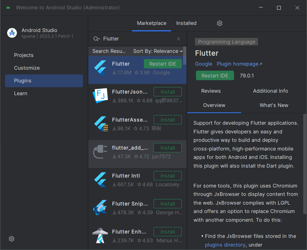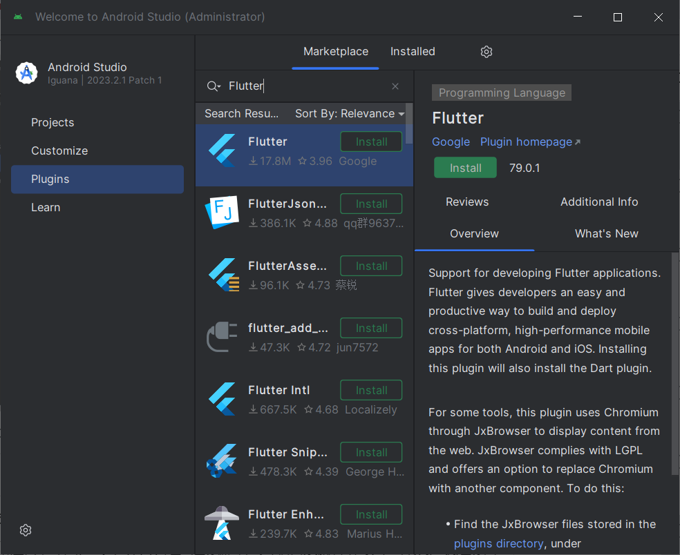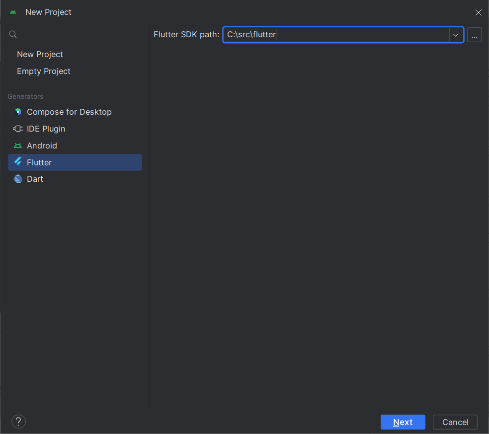 左のFlutterをクリックします。 Flutter SDK pathにFlutter SDKをインストールしたパスを指定します。