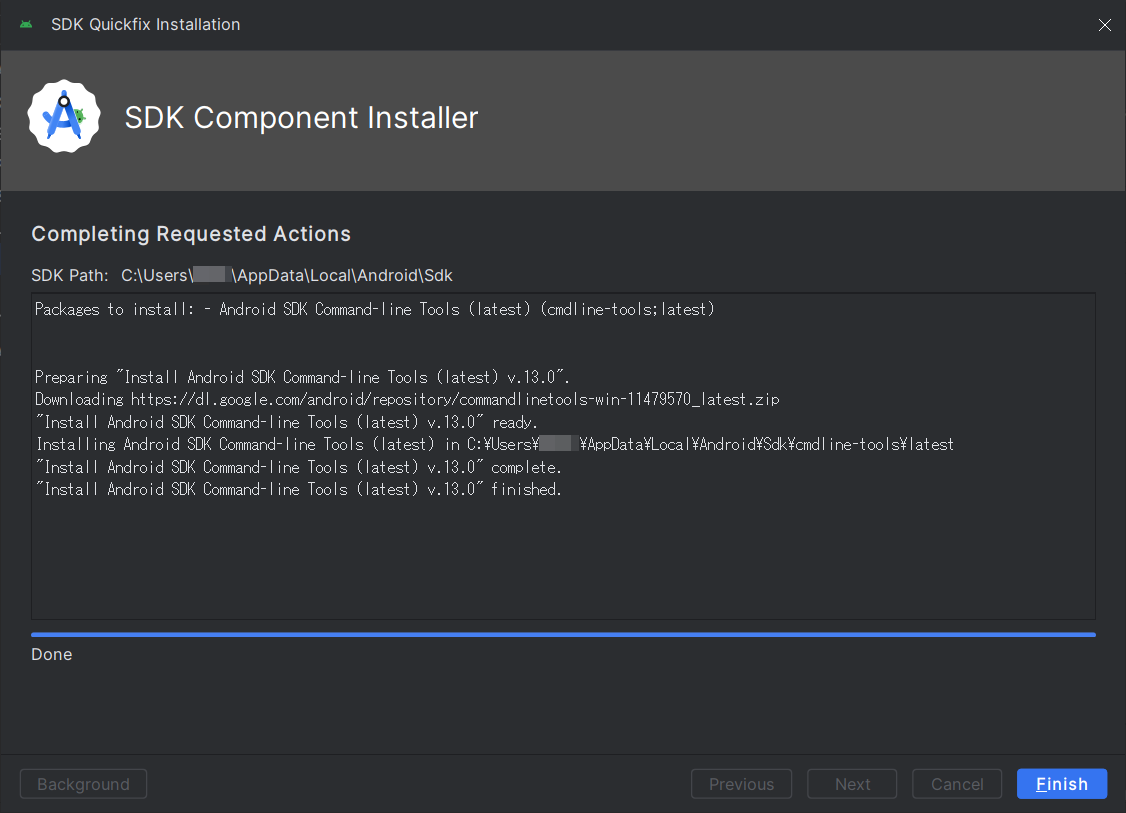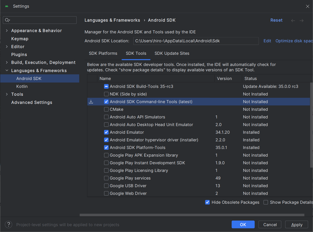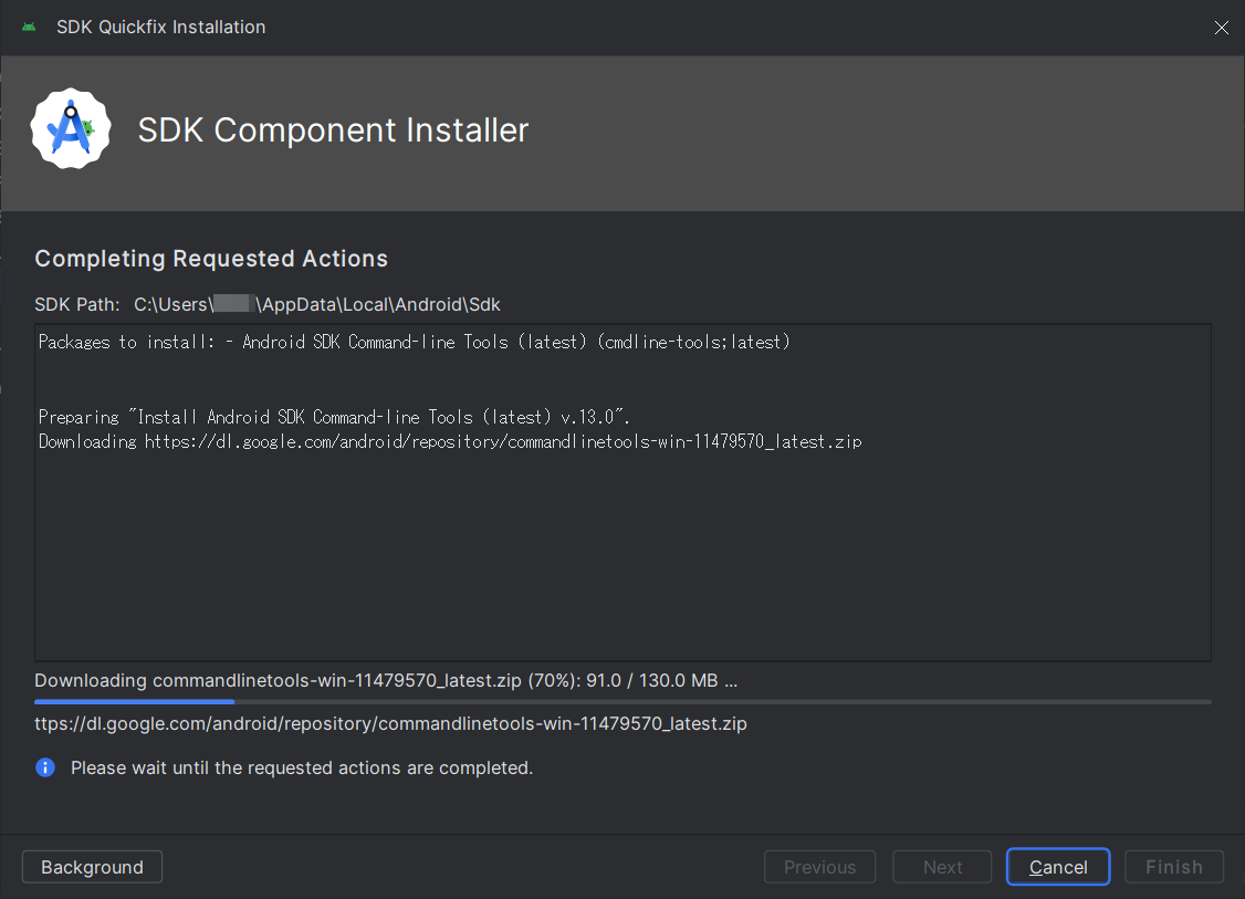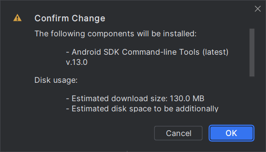 「Android SDK Command-line Tools (latest)」にチェックをして「OK」をクリックします。