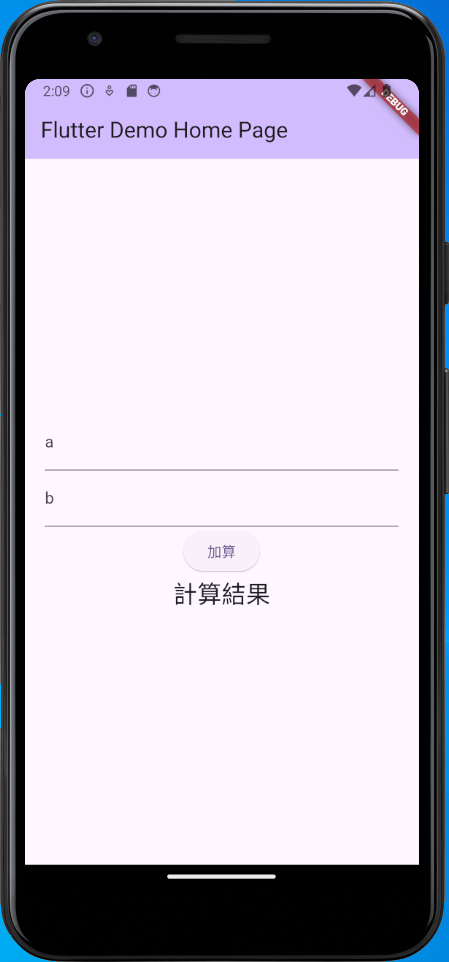数字を2つ入力し「加算」ボタンを押すと計算結果を表示するようにしてみます。