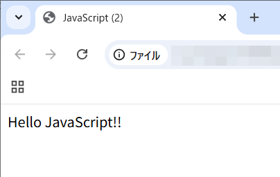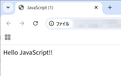 document.write()の位置に「Hello JavaScript!!」と表示されました。