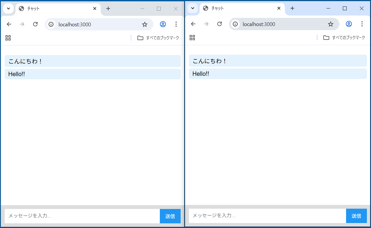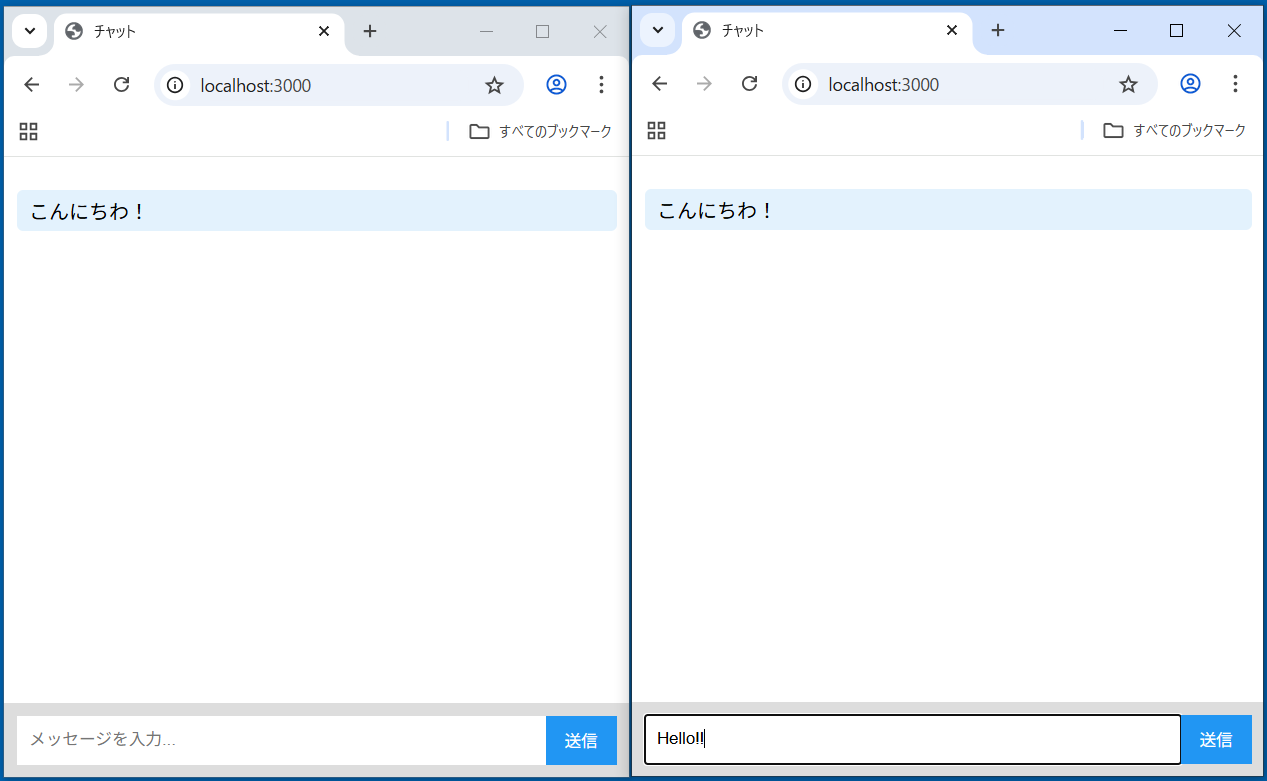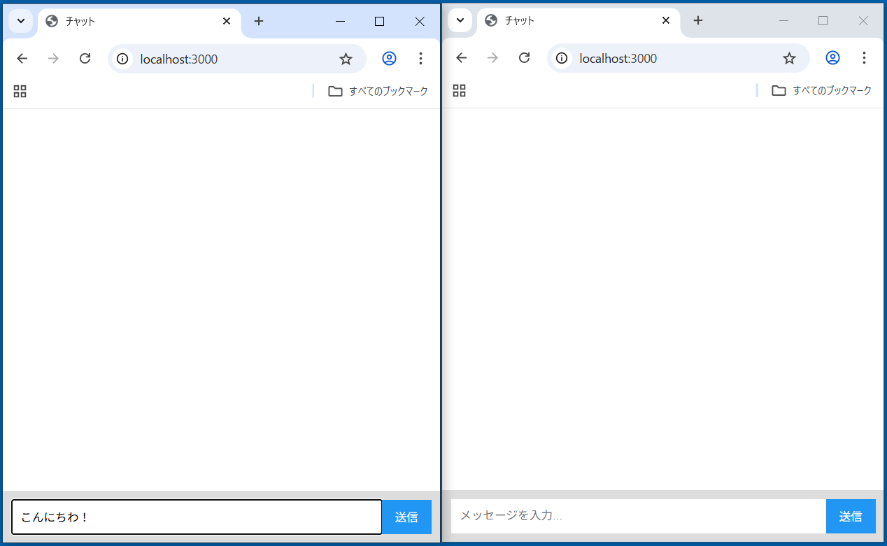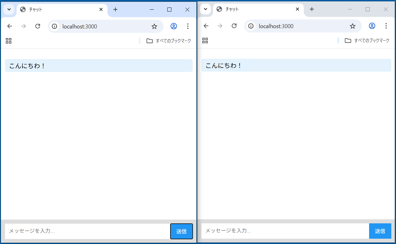 もう一つブラウザを開き、同じくlocalhost:3000へアクセスしてみます。