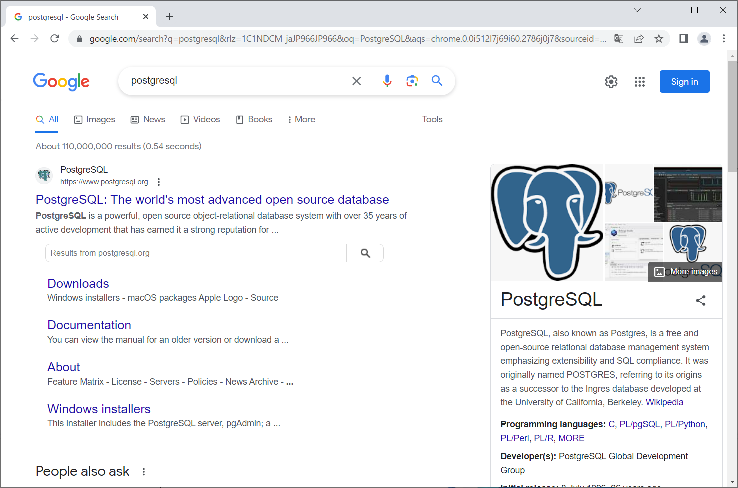 Googleでpostgresqlを検索します。