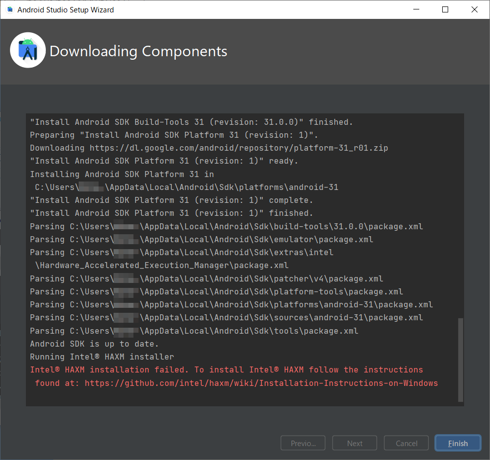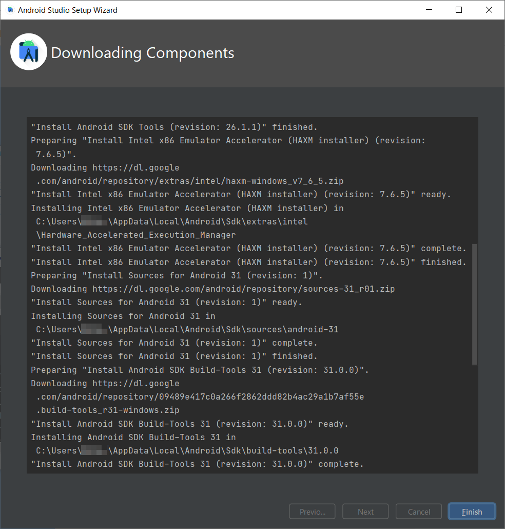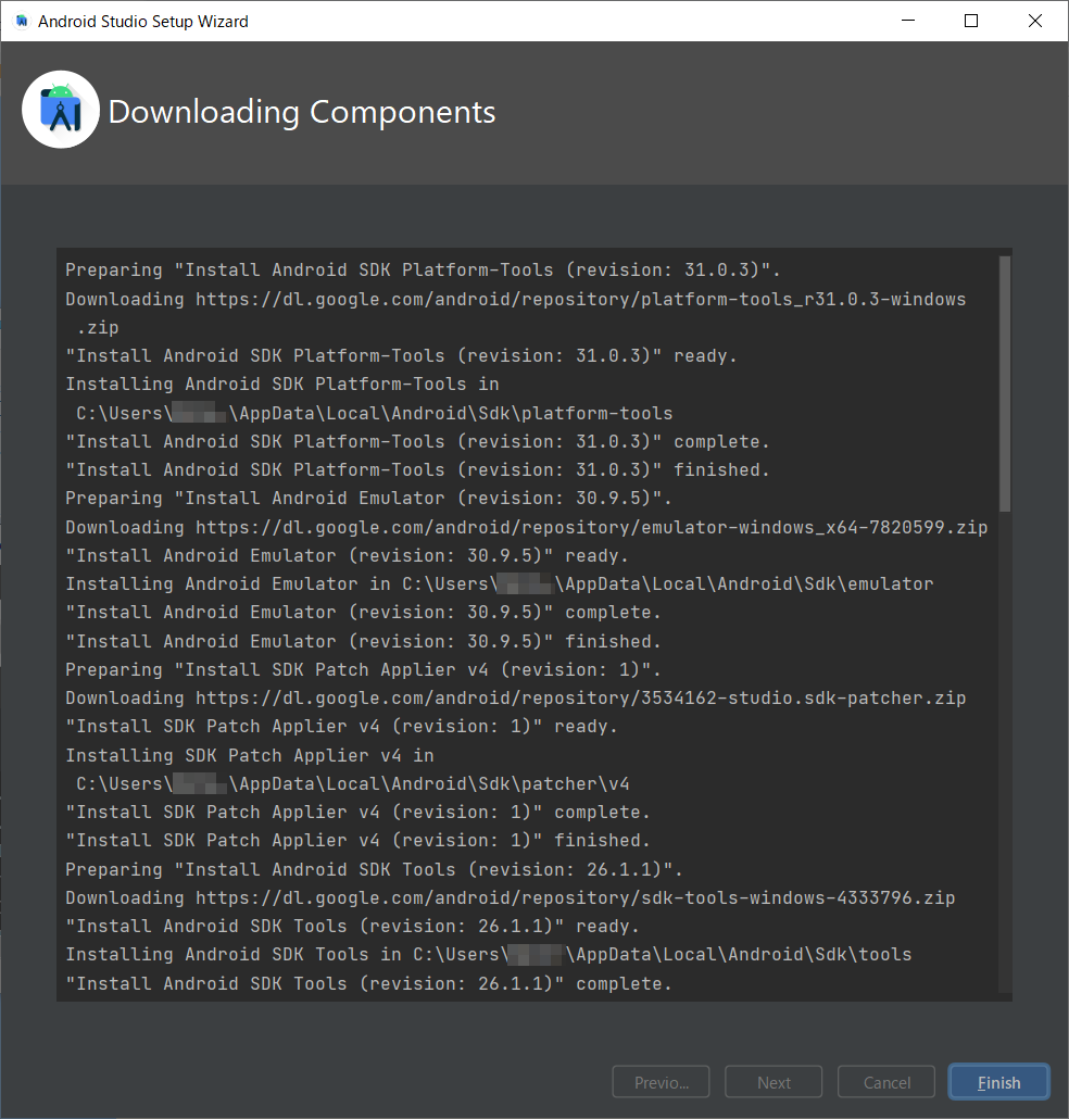 0.3.1.25/android-studio-2020.3.1.25-windows.exe'Progress: 100% - Completed download of C:\Users\xxxxx\AppData\Local\T