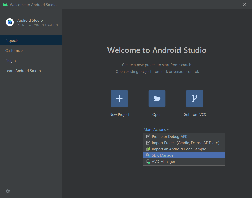 [More Actions]をクリックし[SDK Manager]を選択します。