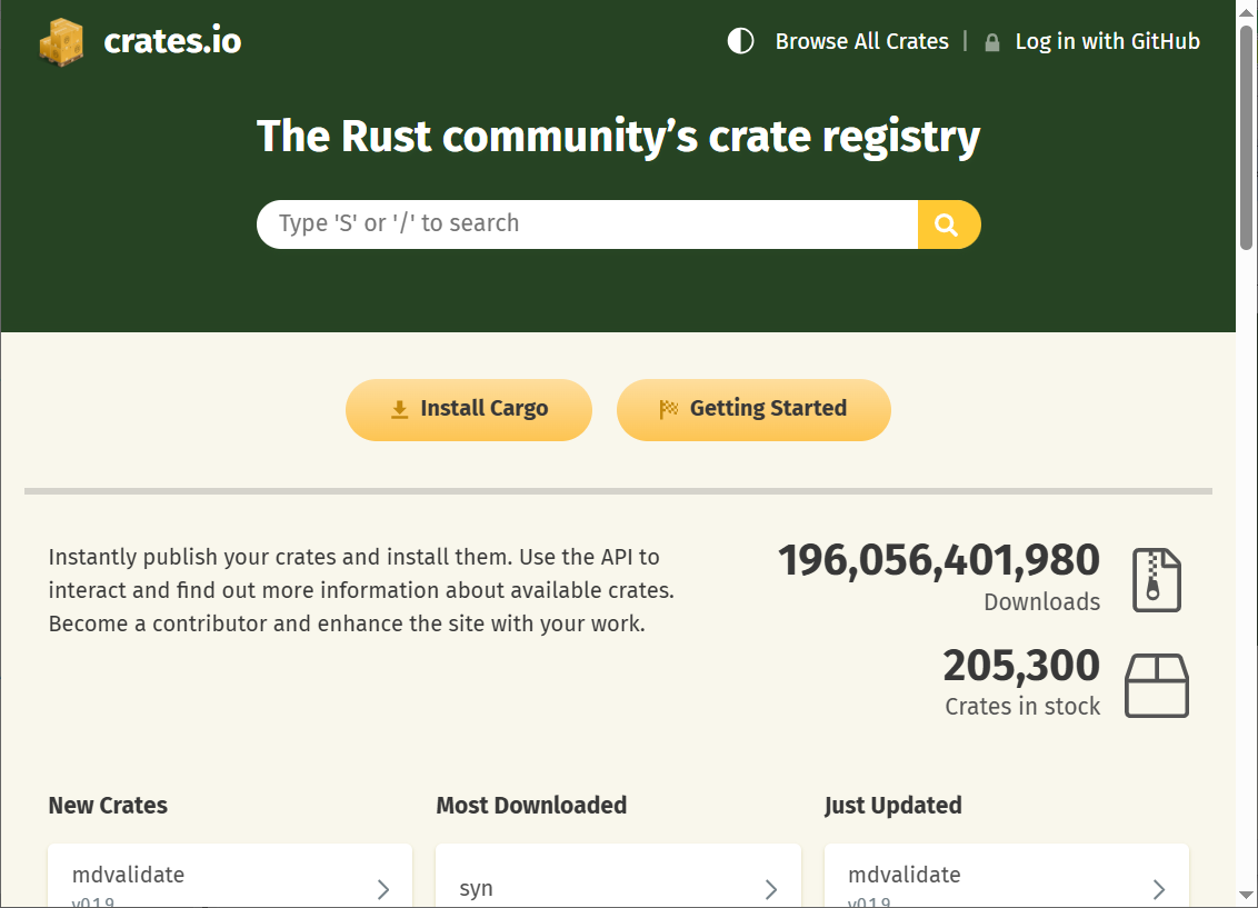 クレートは https://crates.io/ で公開したり他社が作って公開されているクレートを取得することができるようです。