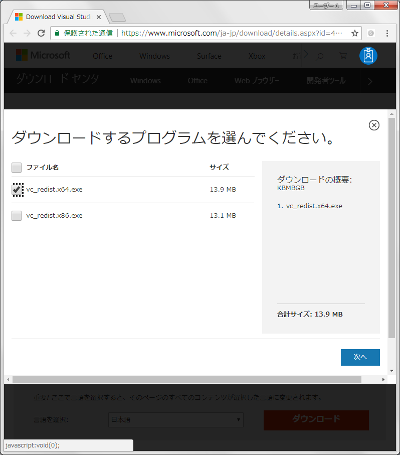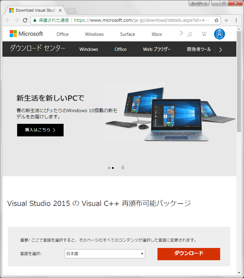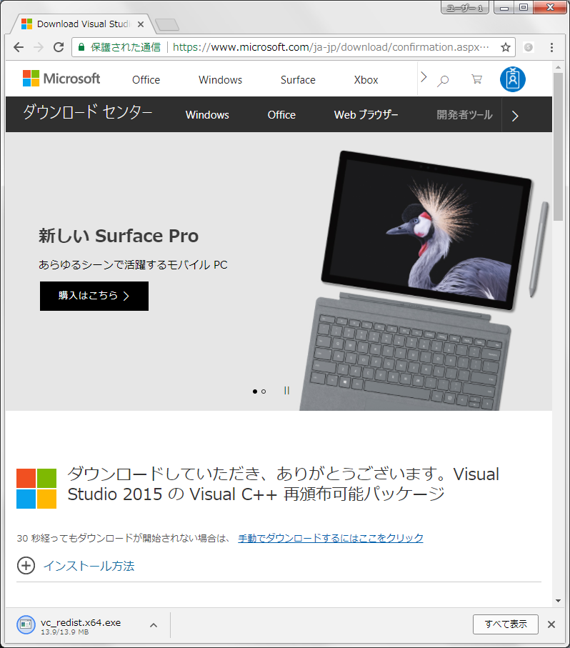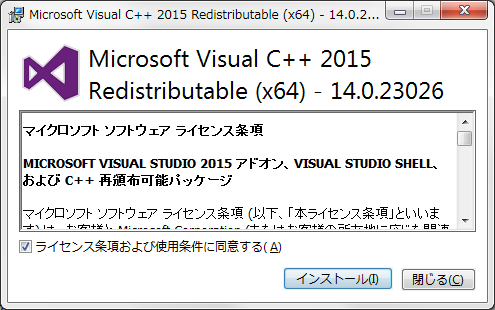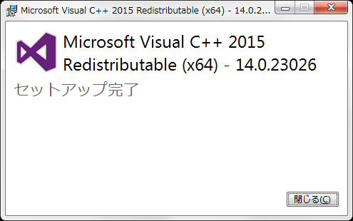 Visual Studio 2015 の VC++ 再配付可能パッケージのインストールが必要な模様です。