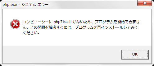 フォルダを確認すると、なぜかphp7ts.dllが無くなっていました。