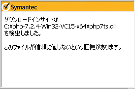 Symantec endpoint protectionがphp7ts.dllを信頼していないので削除した模様です。
