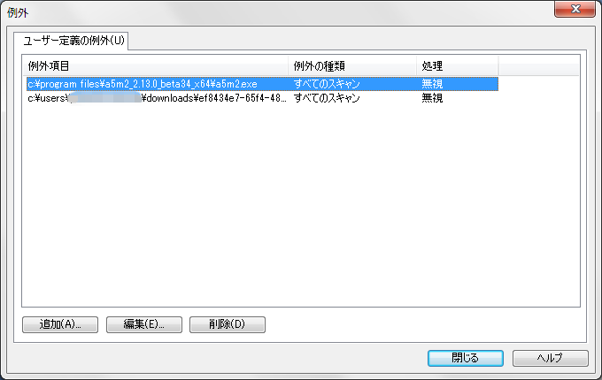 追加ボタンを押しセキュリティリスク例外を選択しフォルダを選択します。