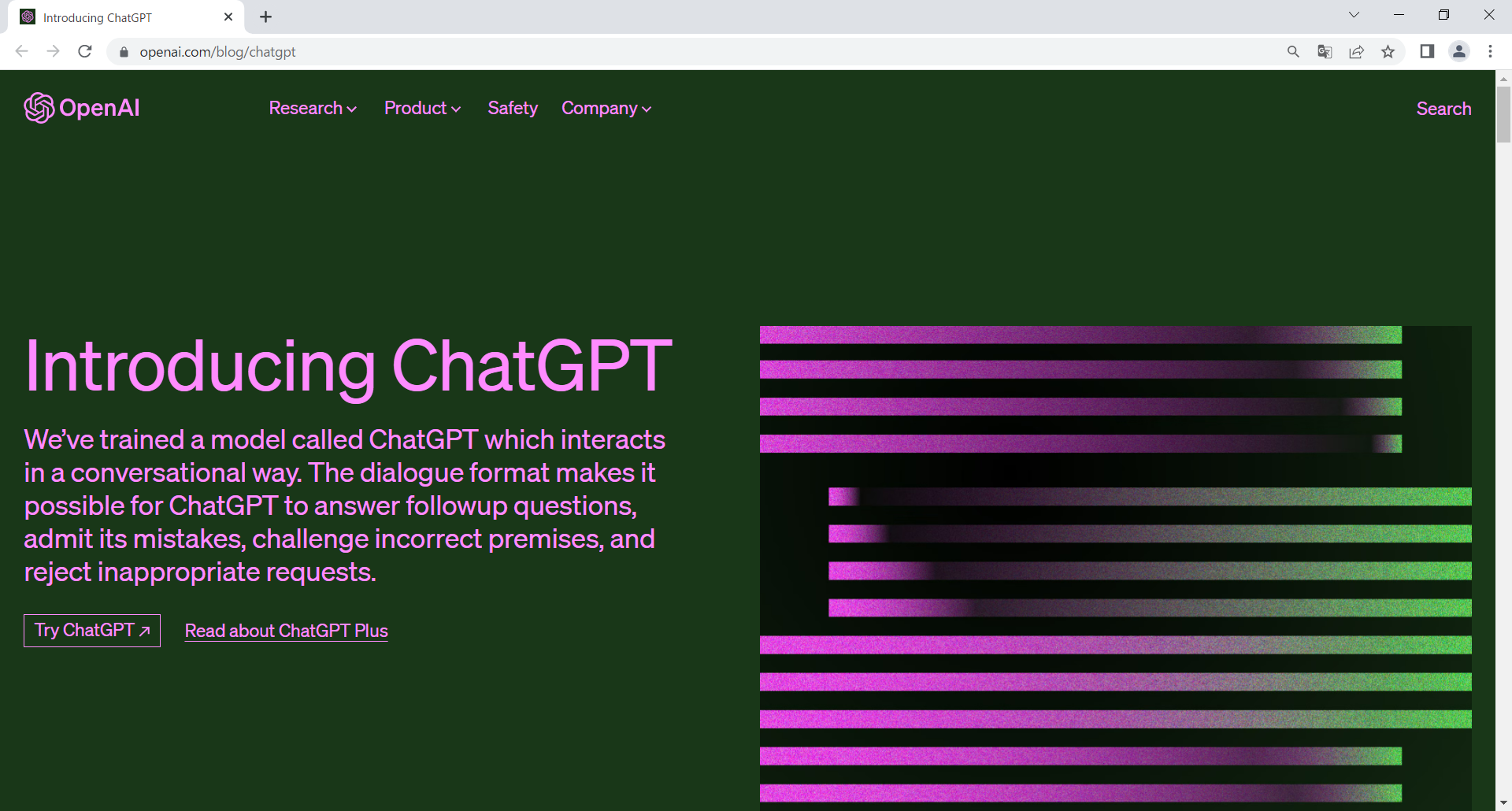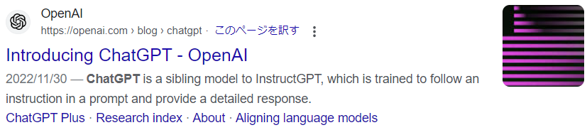 Googleで「ChatGPT」と検索し表示された Introducing ChatGPT - OpenAIをクリックします。