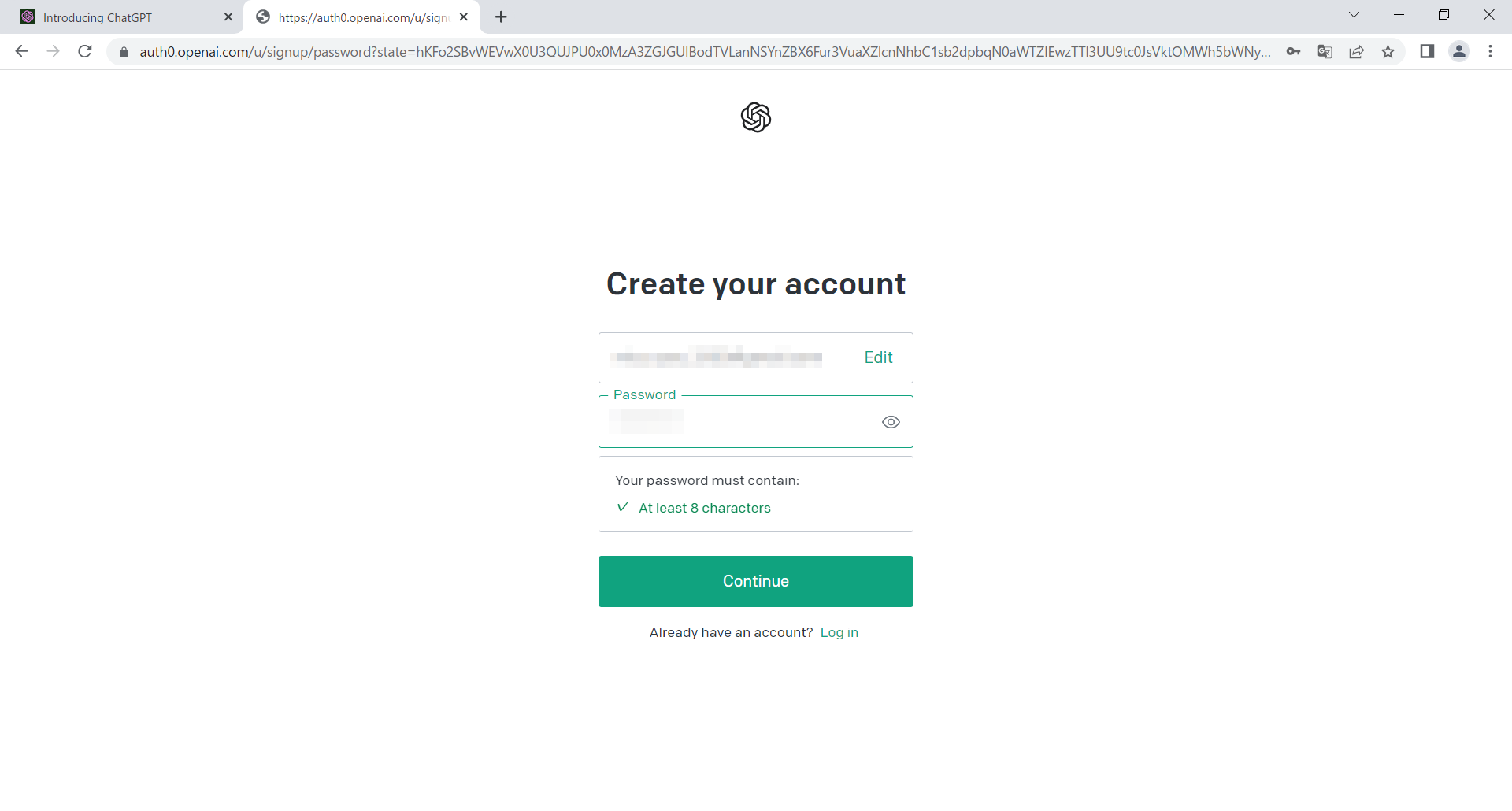 パスワードを入力し「Continue」をクリックします。