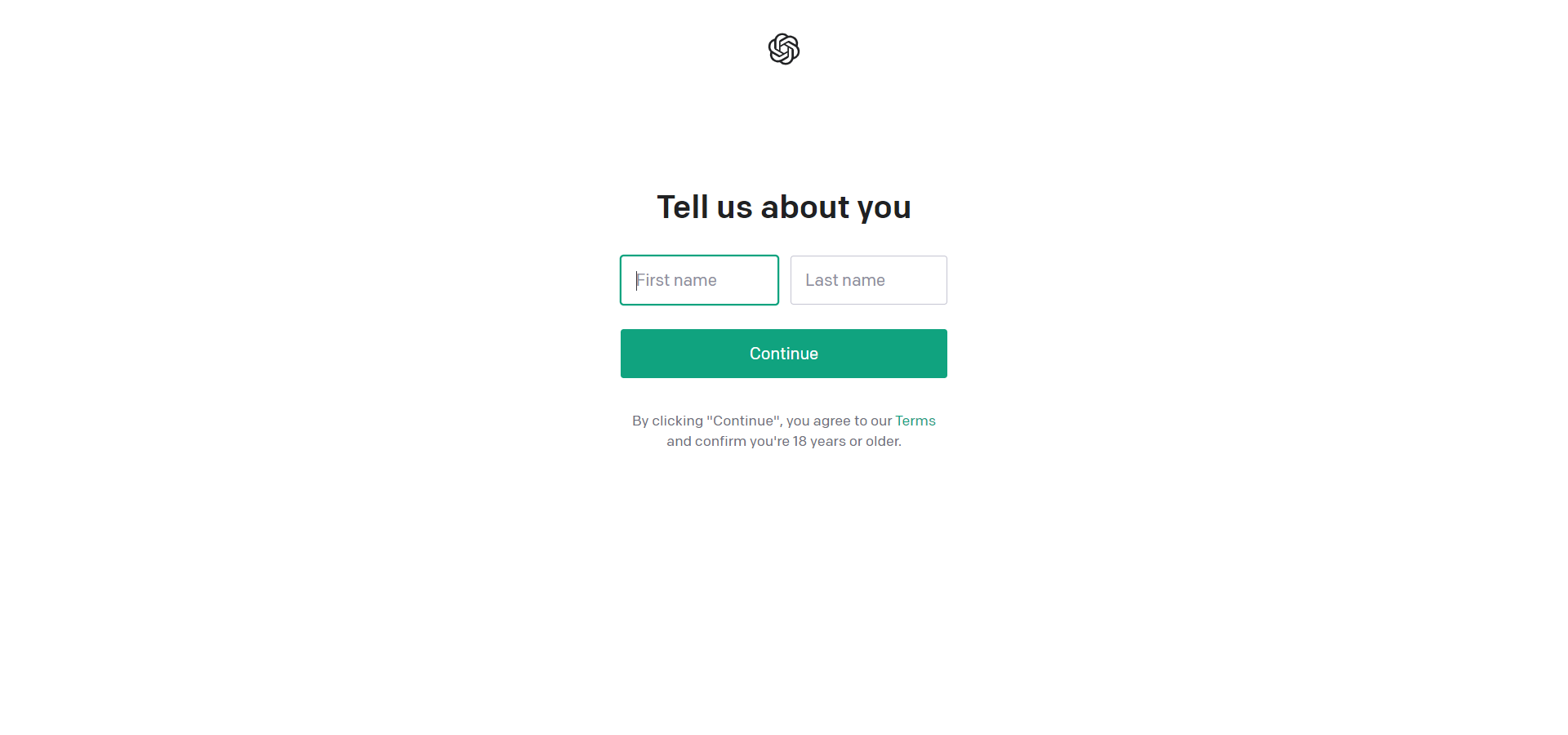 ログイン画面を開き、「First Name」「Last Name」を入力し「Continue」をクリックします。