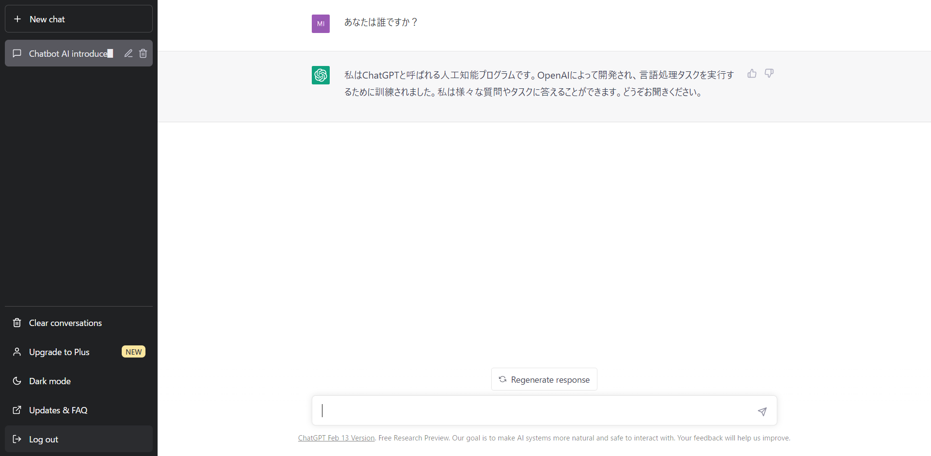 試しに「あなたは誰ですか?」と入力してみます。