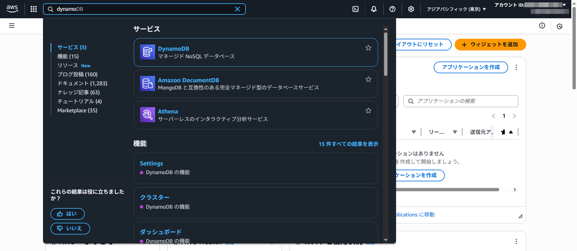 サービス欄に「dymanodb」と入力します。