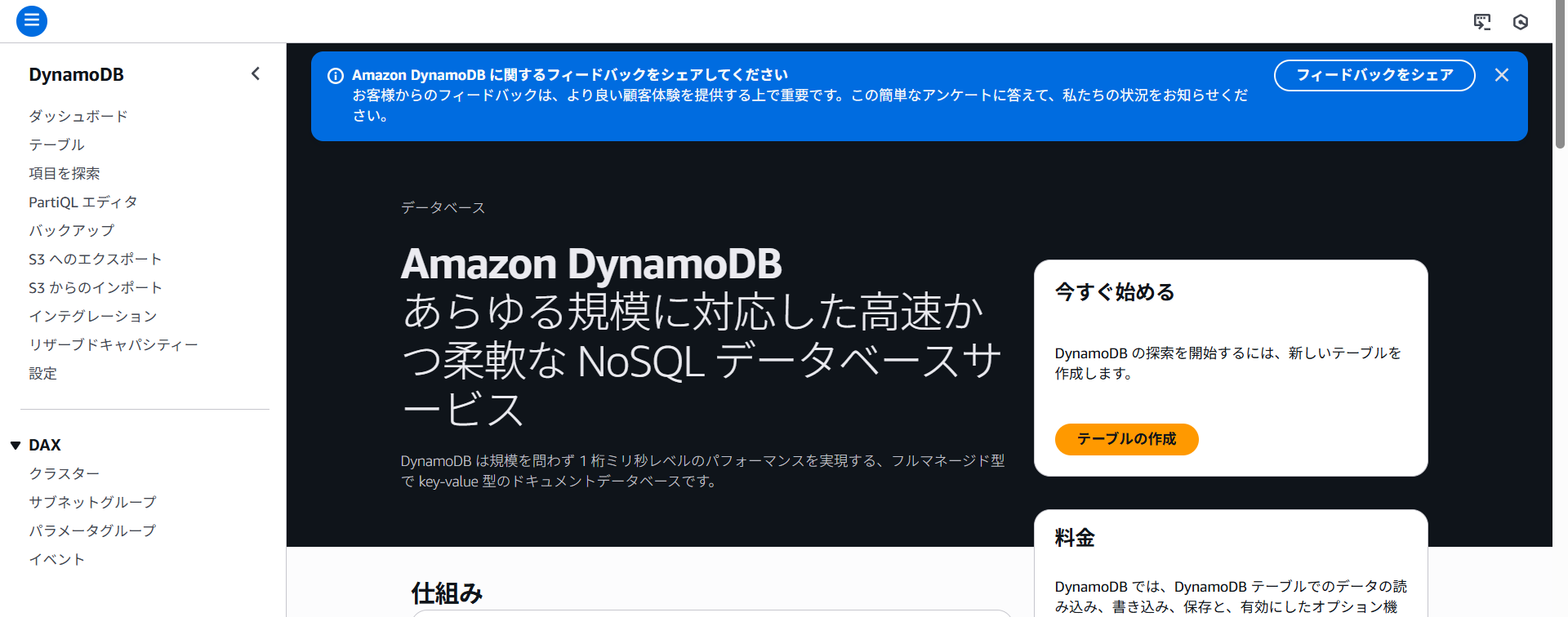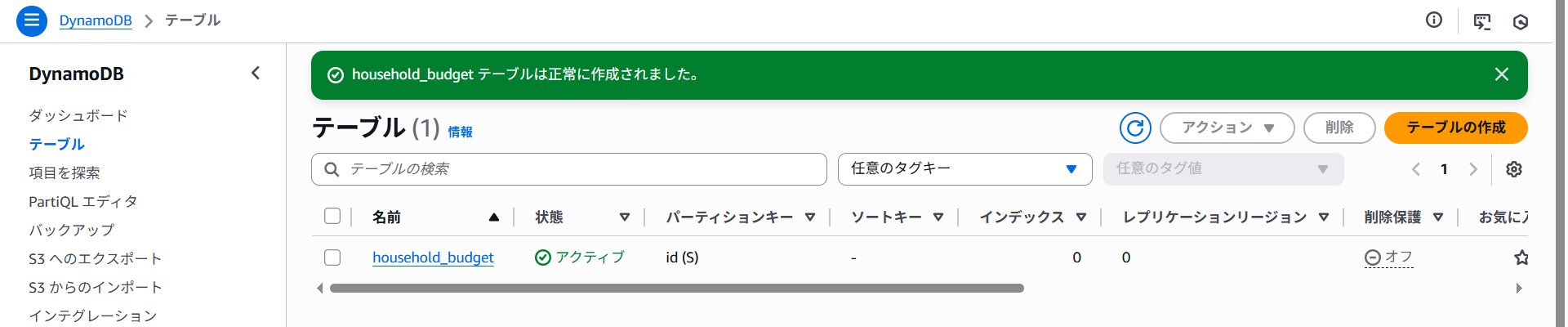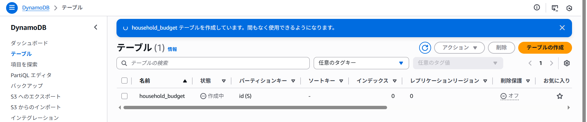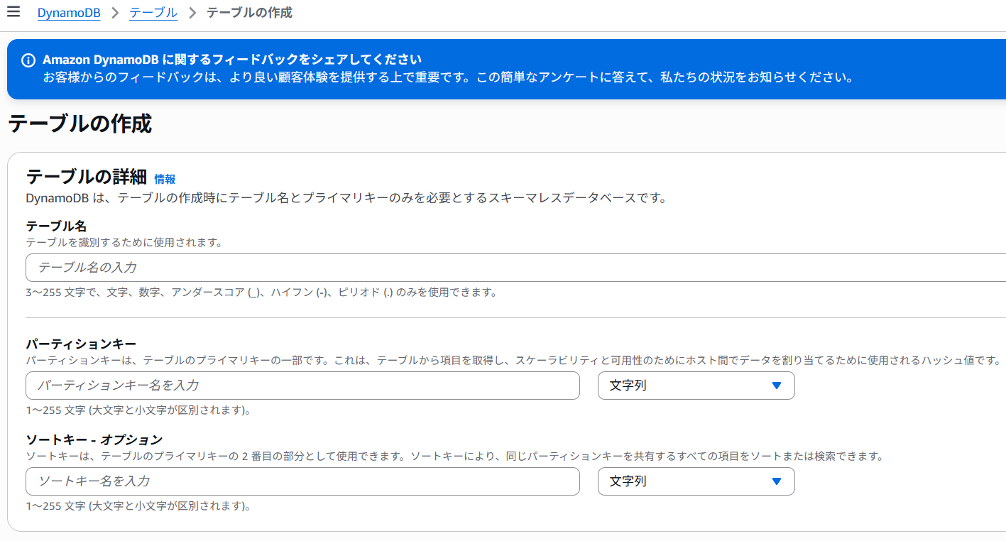 DynamoDBでテーブルを作ってみます。