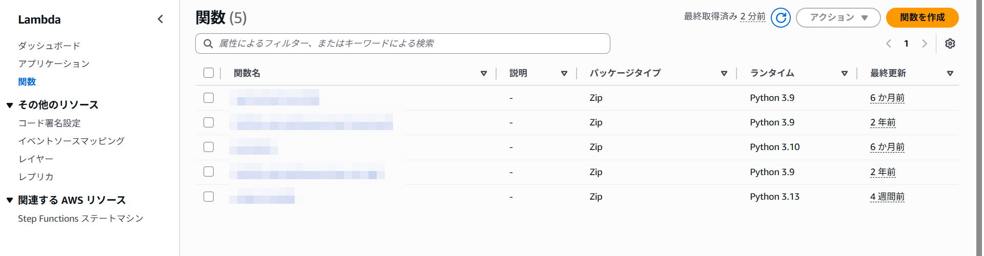 Lambdaの作成
