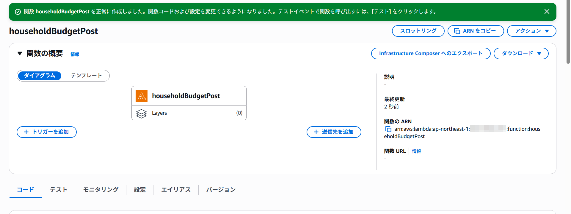 Lambda関数が作成されました。