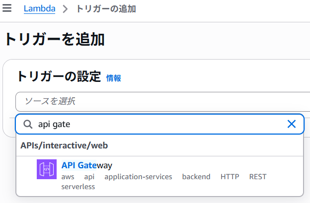 API Gatewayをクリックします。