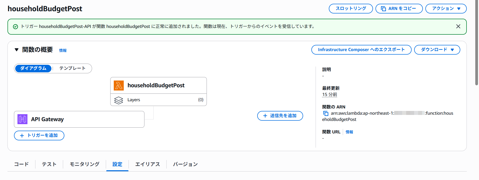 API Gatewayがトリガーに追加されました。
