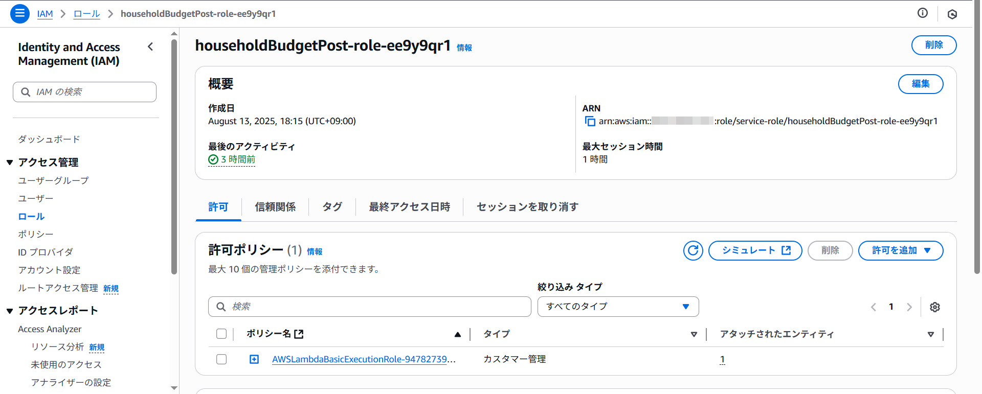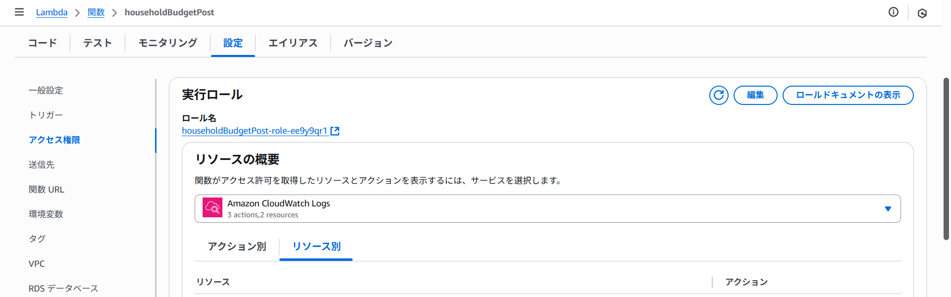 - IAM ロール householdBudgetPost-role-xxx