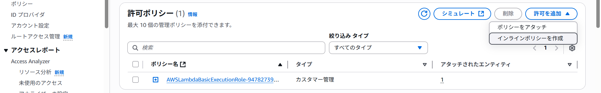 IAMロールのページが開きました。