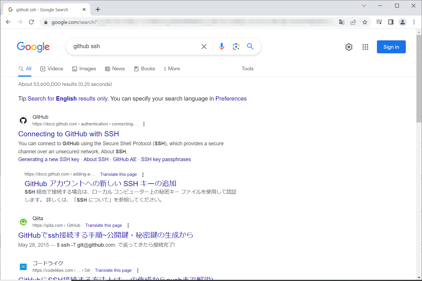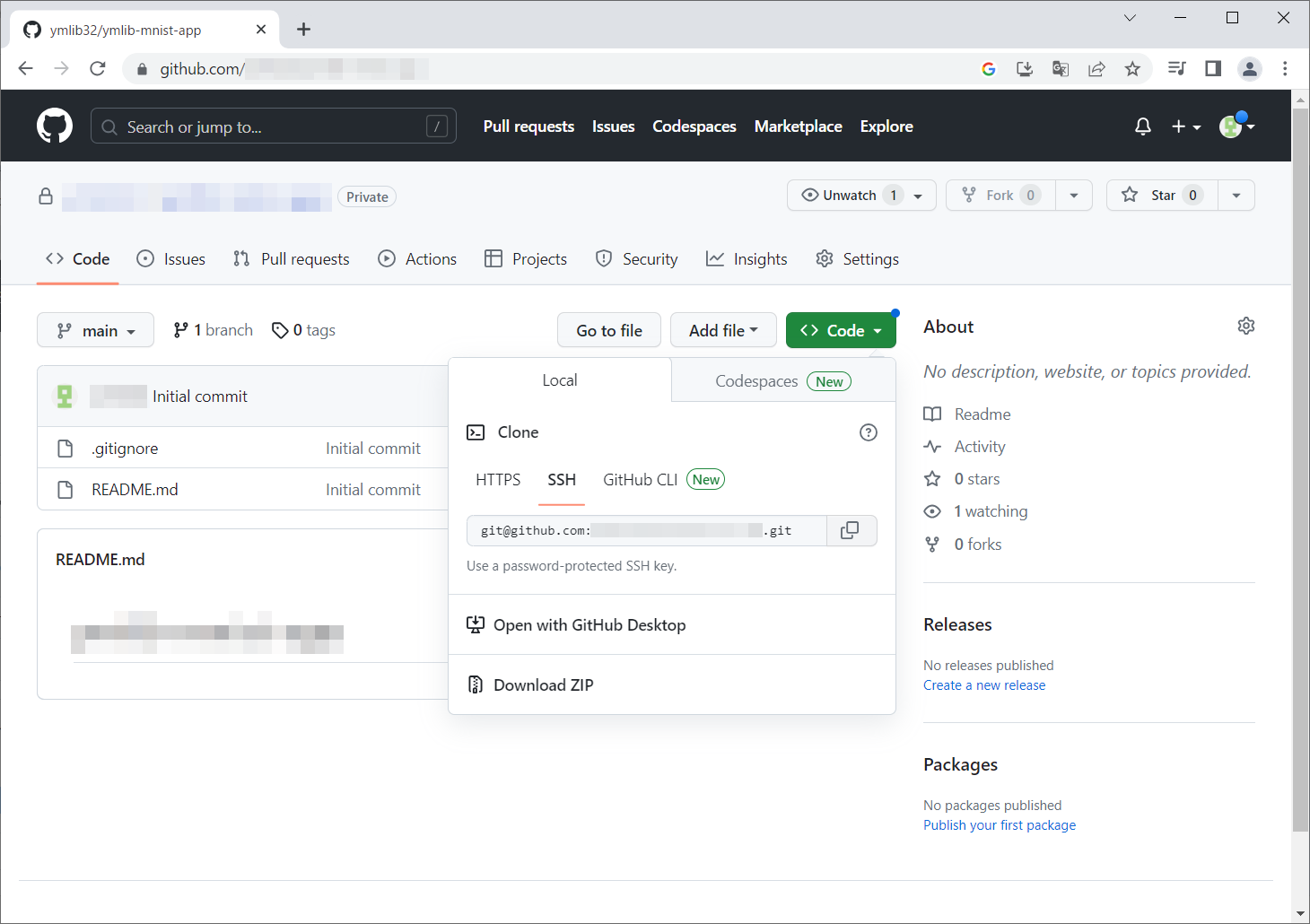 GitHubを開きCodeを選択しSSHを選択します。 表示されたURLをコピーします。