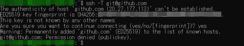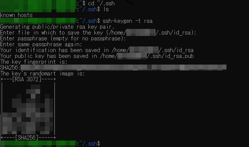 sshキーを発行します。 途中で何回か入力を求められますが、全部何も入力をしないでEnterを押しました。