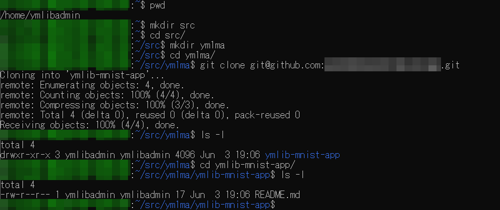 フォルダを作成しgit cloneでリポジトリーをローカルにコピーします。
