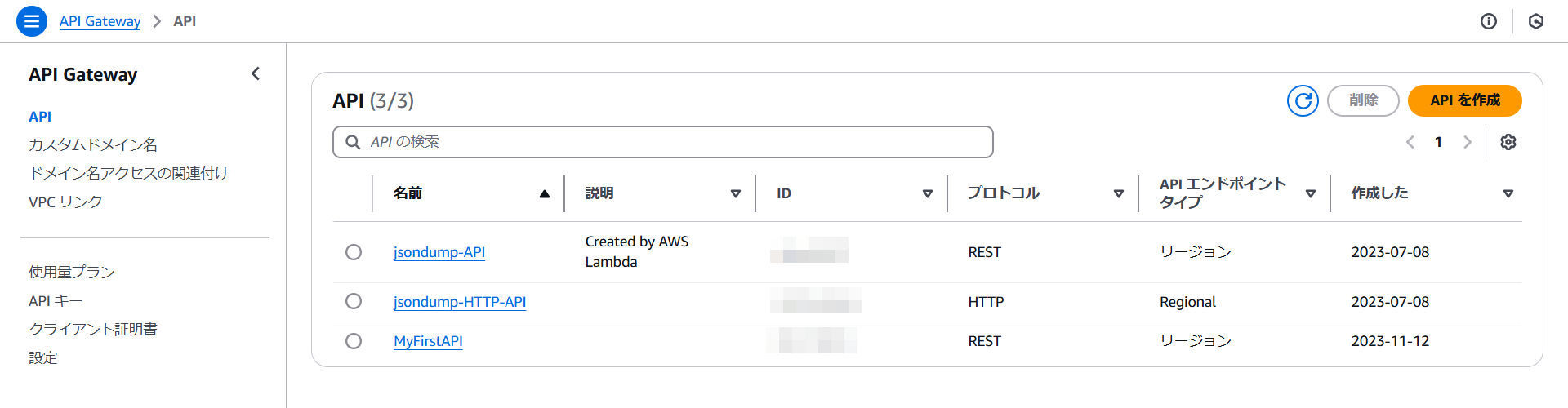 API GatewayのAPIを開きます。