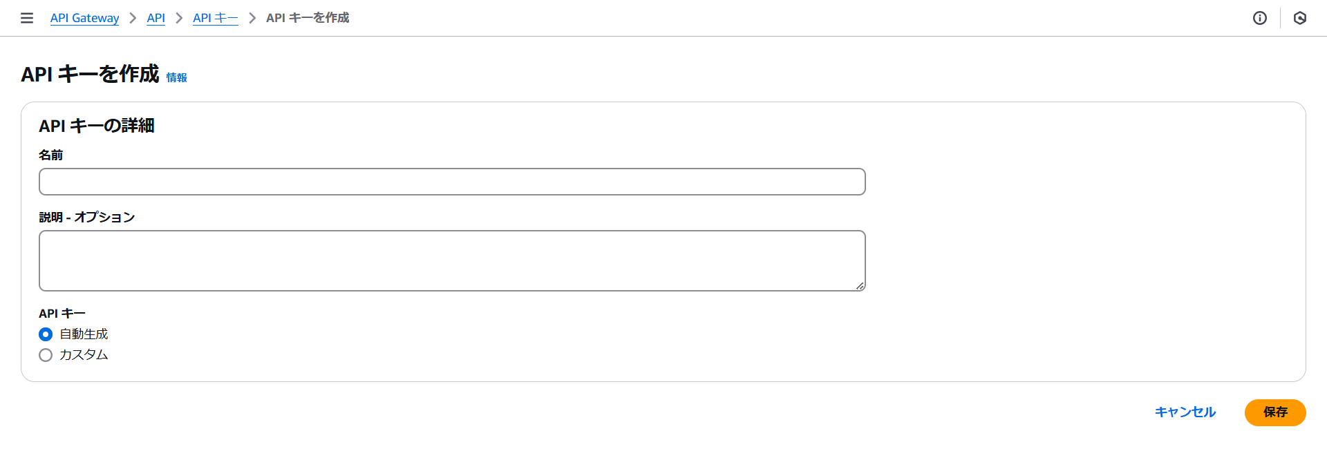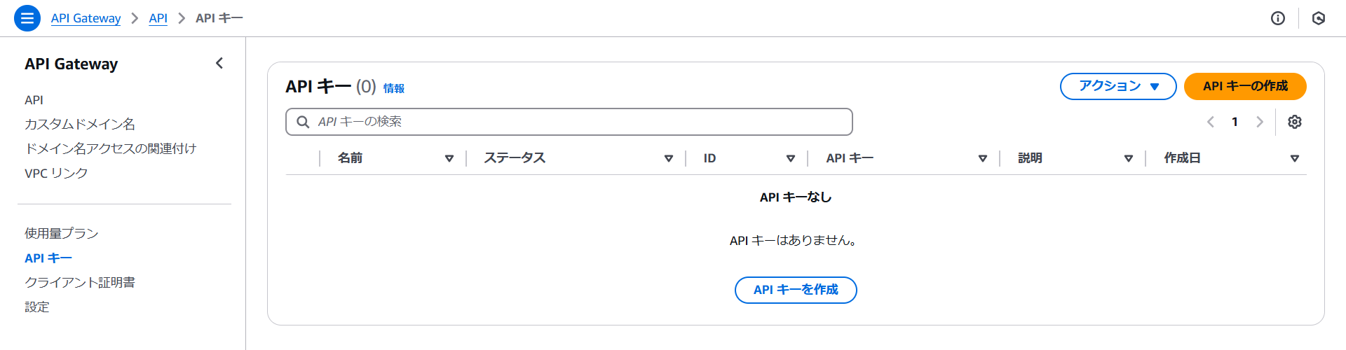 API GatewayにAPIキーを設定します。