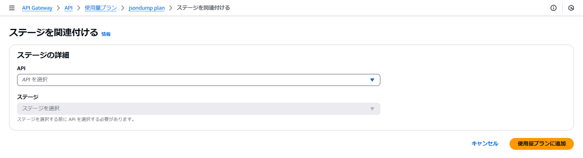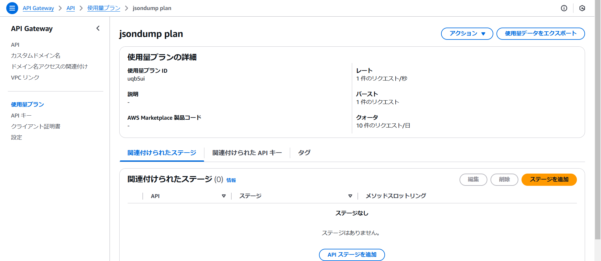 使用量プランにステージが関連付けられました。