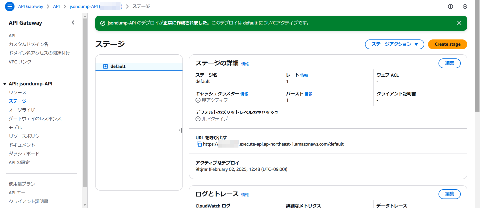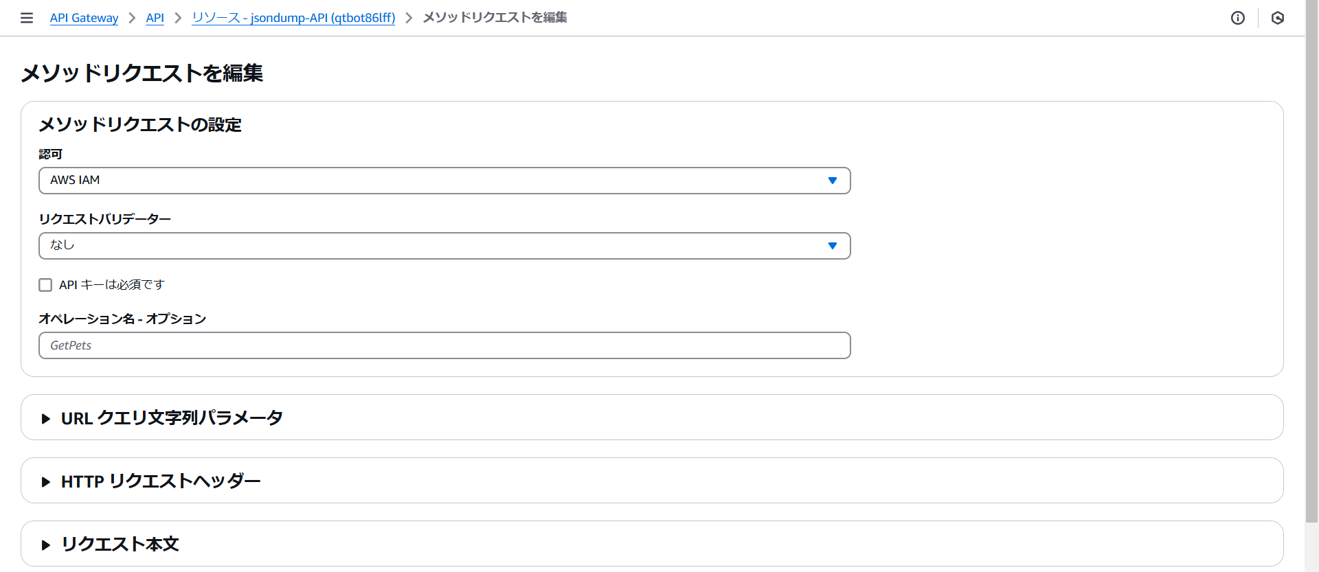 API Gatewayのjsondump-APIを開きます。