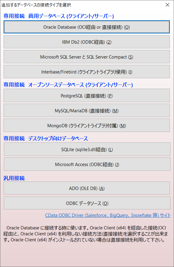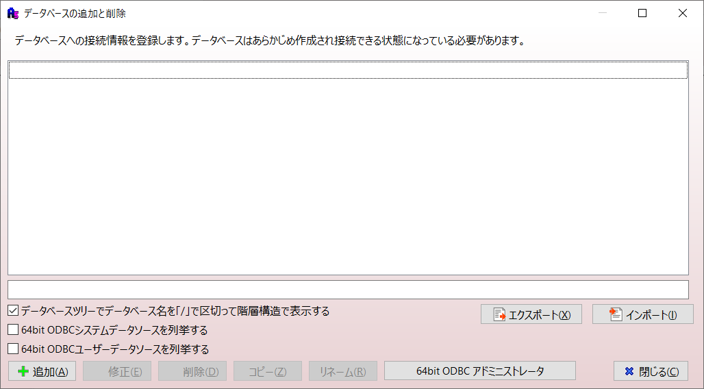 起動すし「データベースの追加と削除」画面で「追加」を押下します。