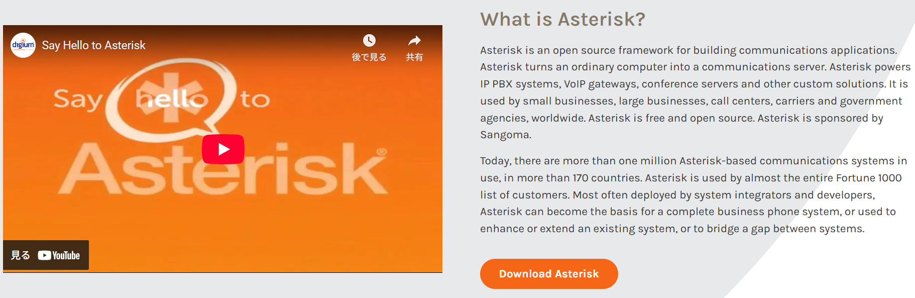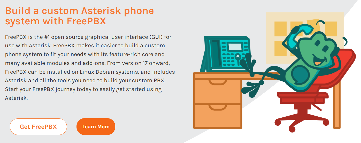 下にスクロールしていくと Build a custom Asterisk phone system with FreePBX という説明がありました。