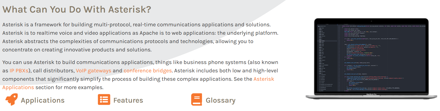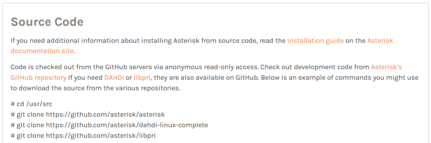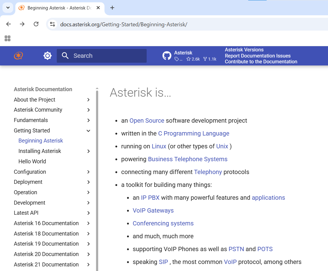 まずはAsteriskのページを見てみます。 Get Startedのタブが表示されました。