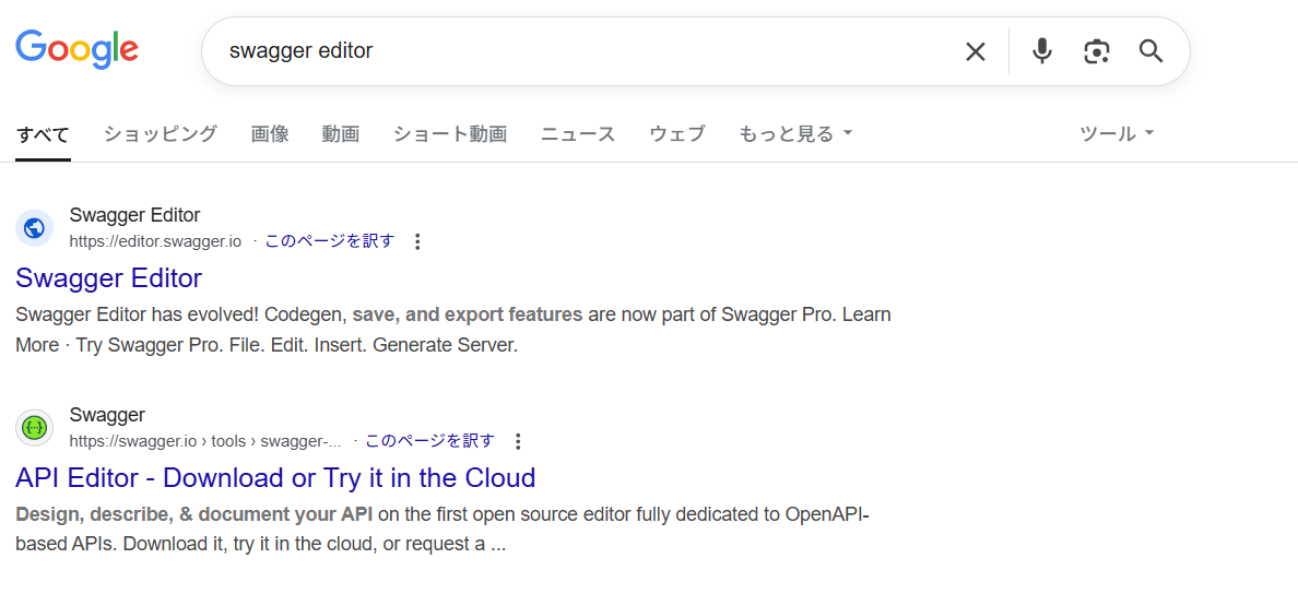 「swagger editor」で検索します。