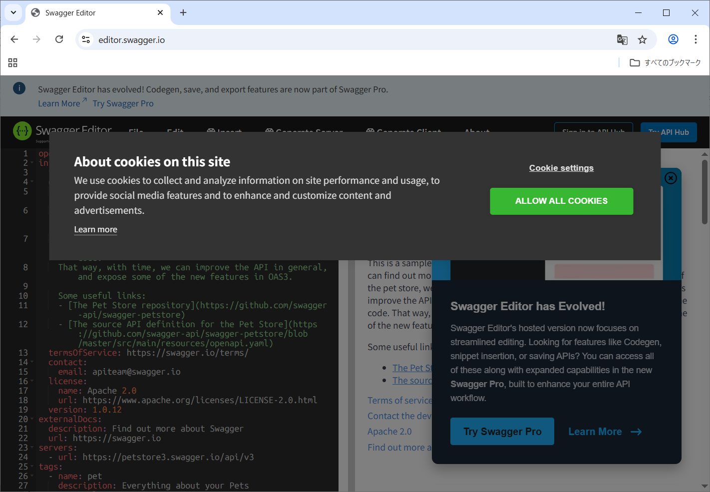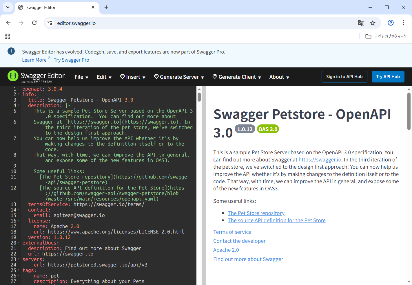 最初に表示されている「Swagger Editor」をクリックします。