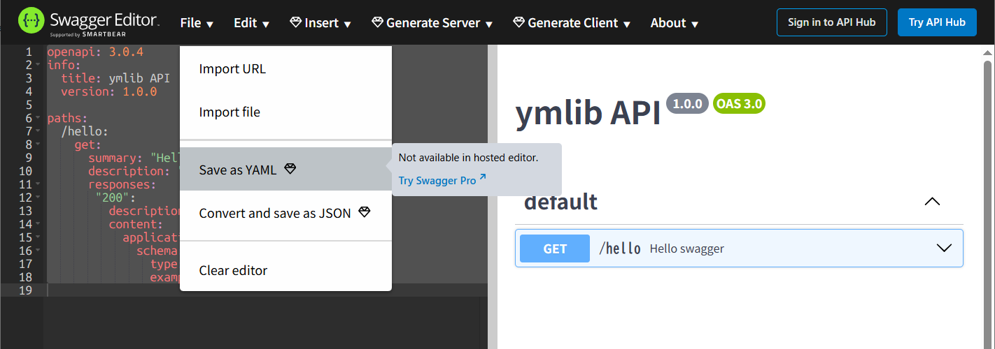 保存しようとしましたが、Swagger Proじゃないとできないようです。