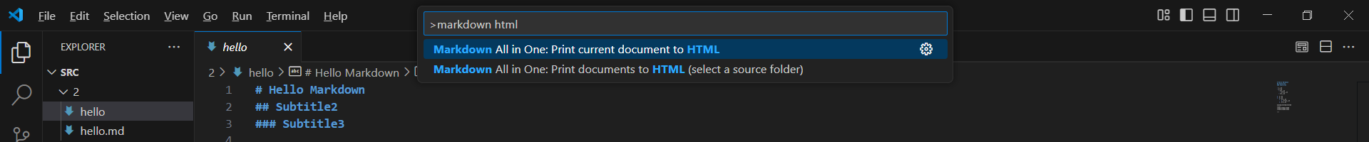Ctrl+Shift+Pを押しmarkdown htmlと入力します。