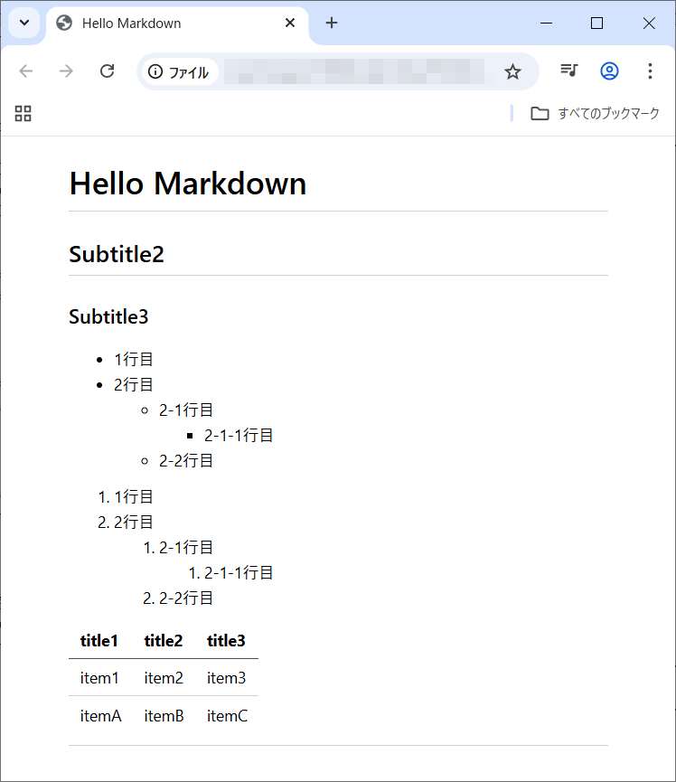 箇条書きリストやテーブル、水平線を記入してみます。