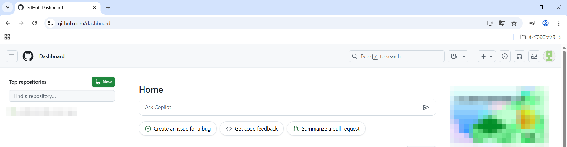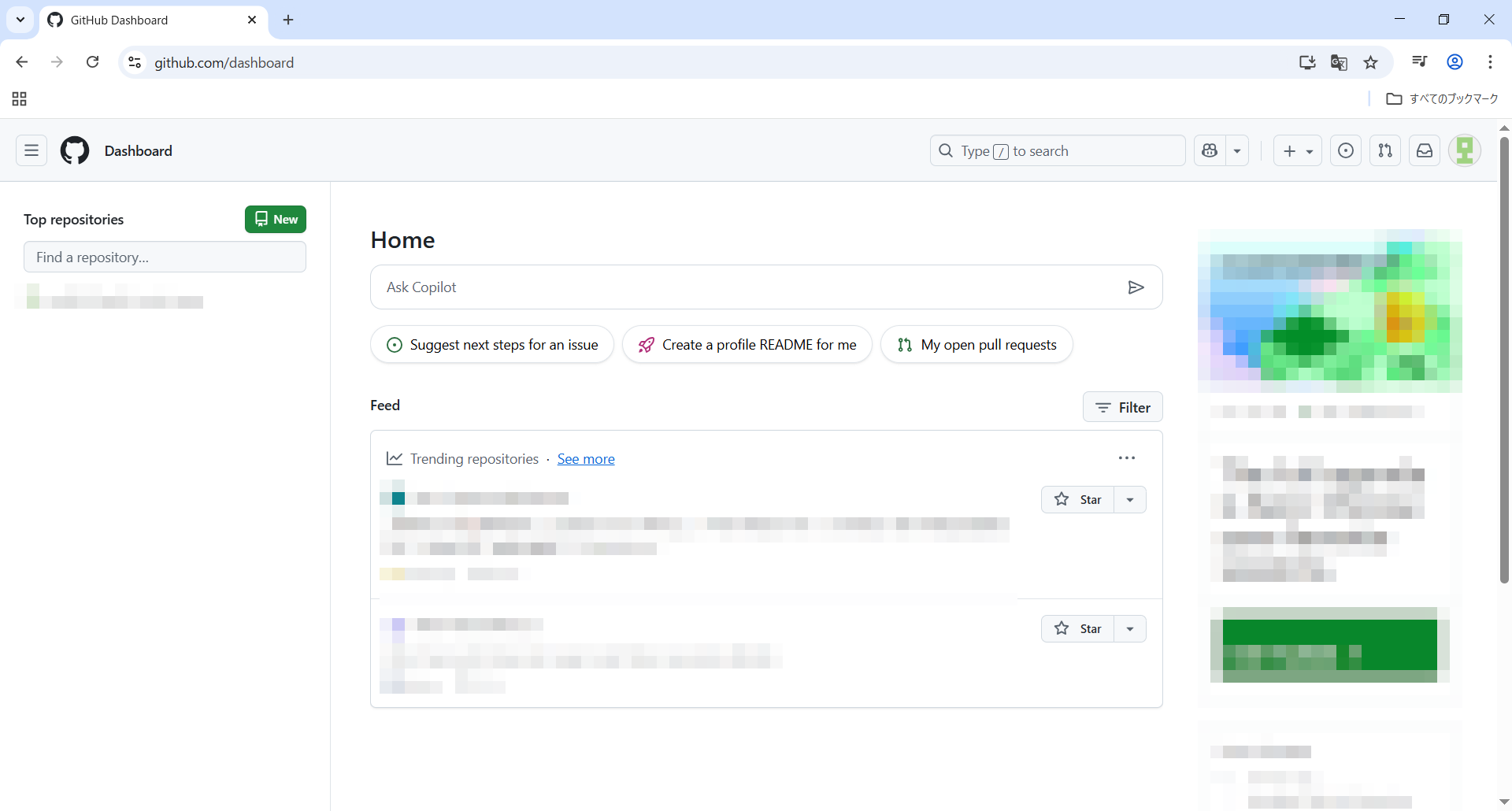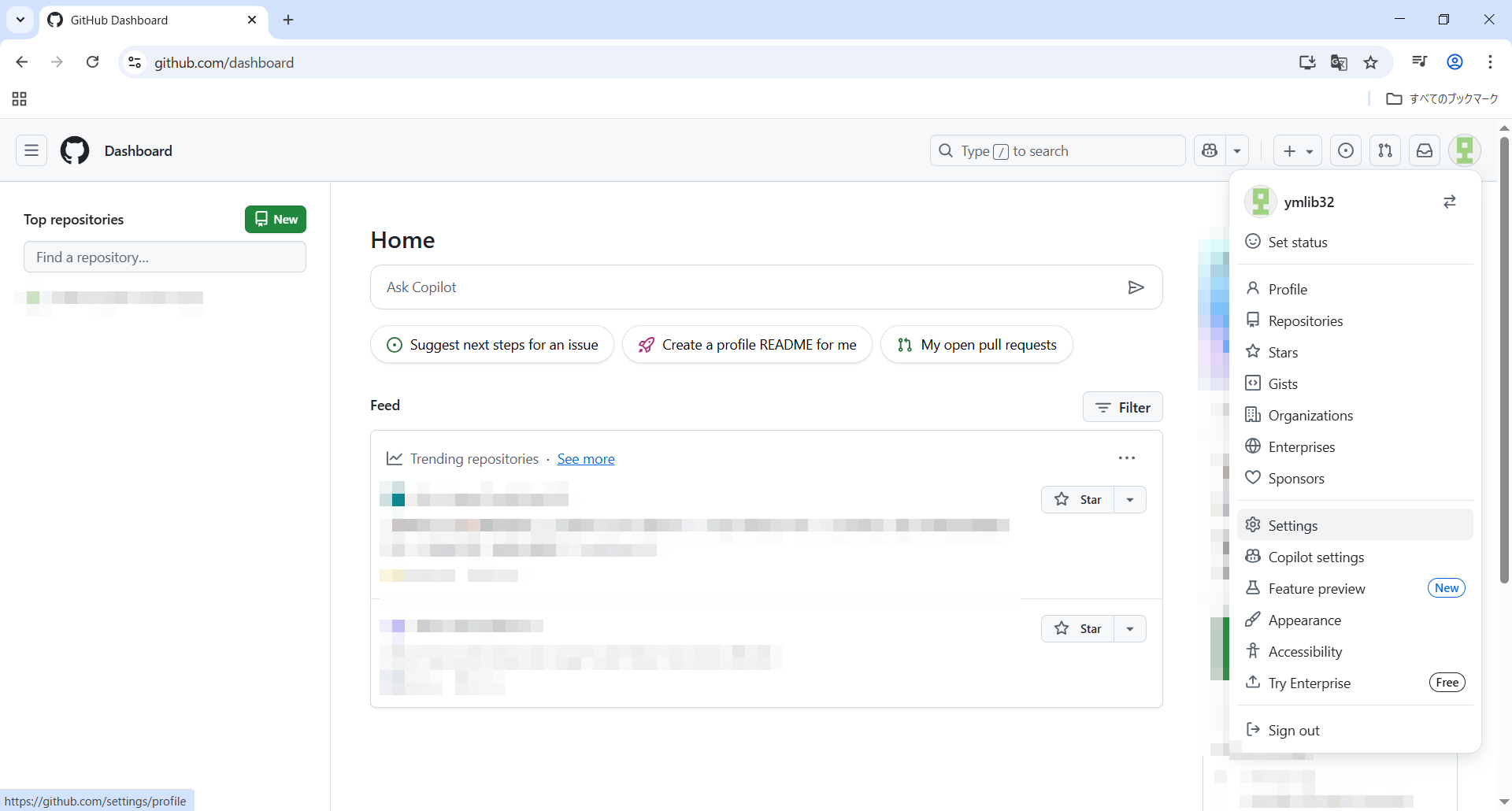 GitHubのHOMEを開きます。