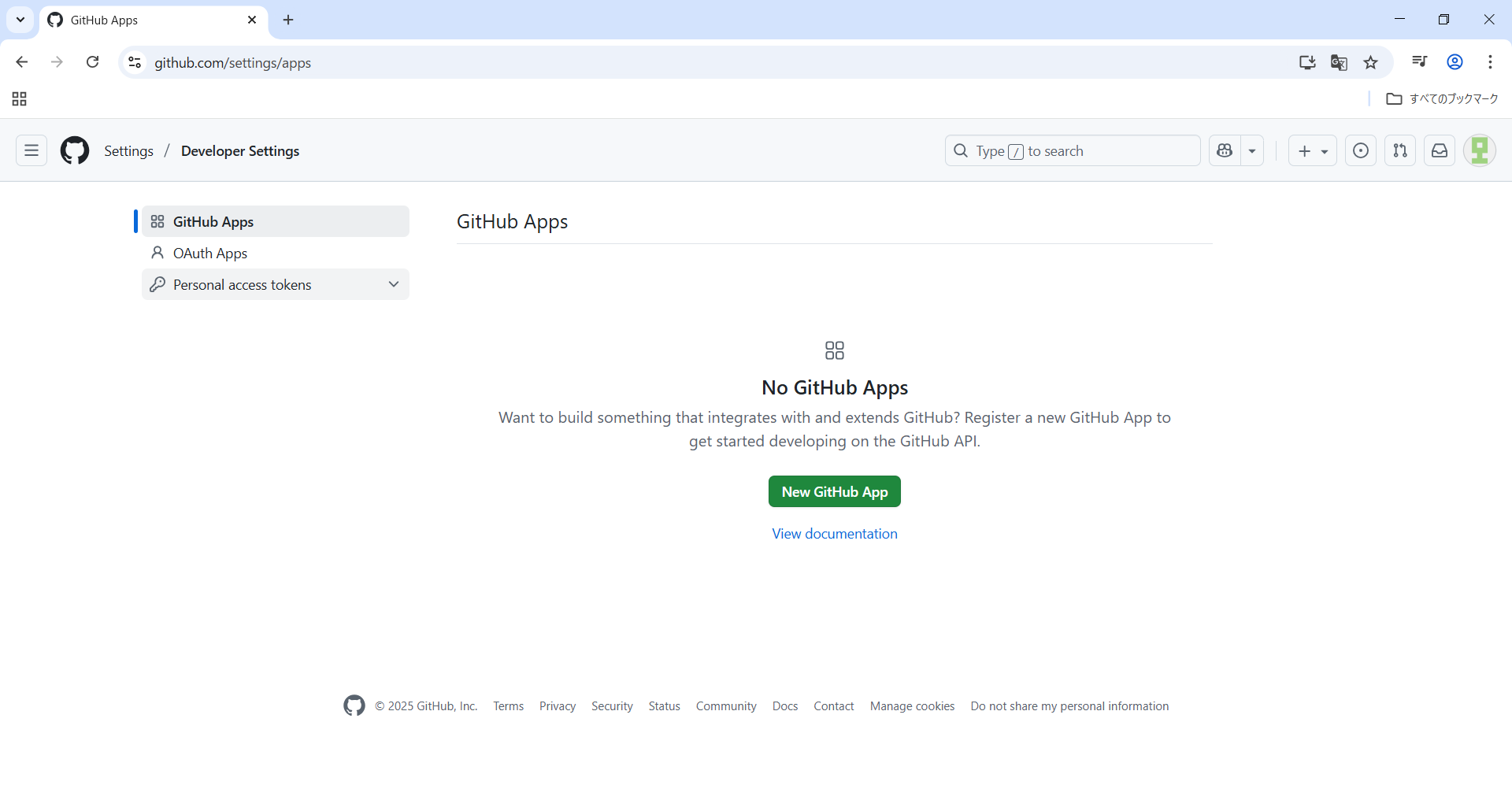 Personal access tokensをクリックします。