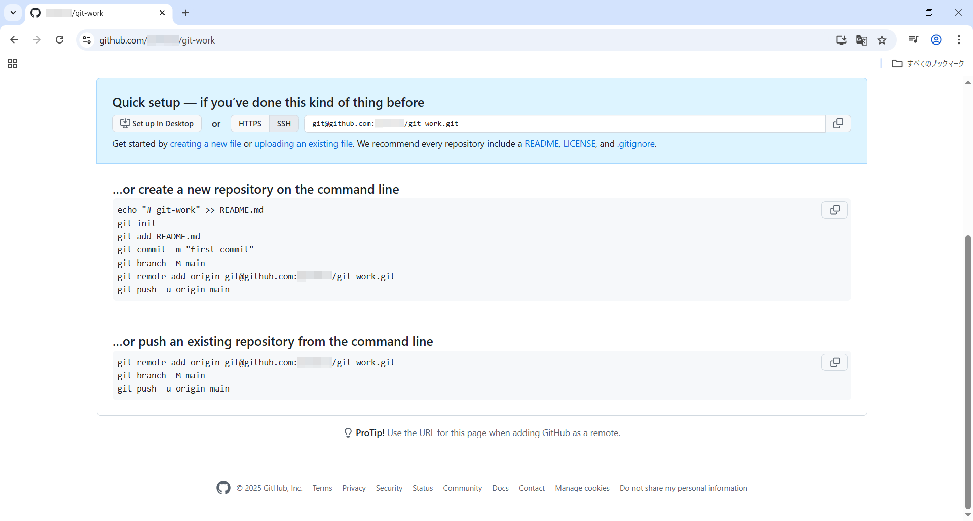 リポジトリのページを下にスクロールさせると...or push an existing repository from the command lineという表示があります。