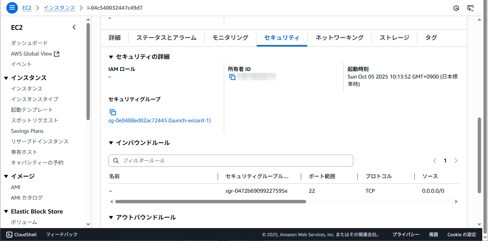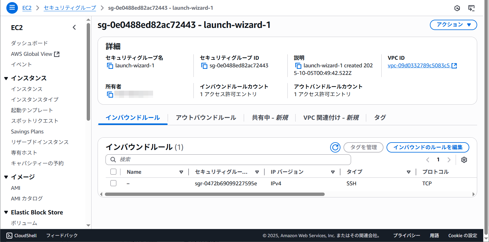 セキュリティグループに表示されているリンクをクリックします。