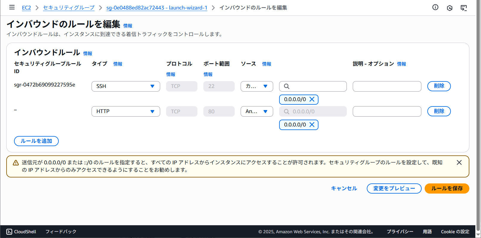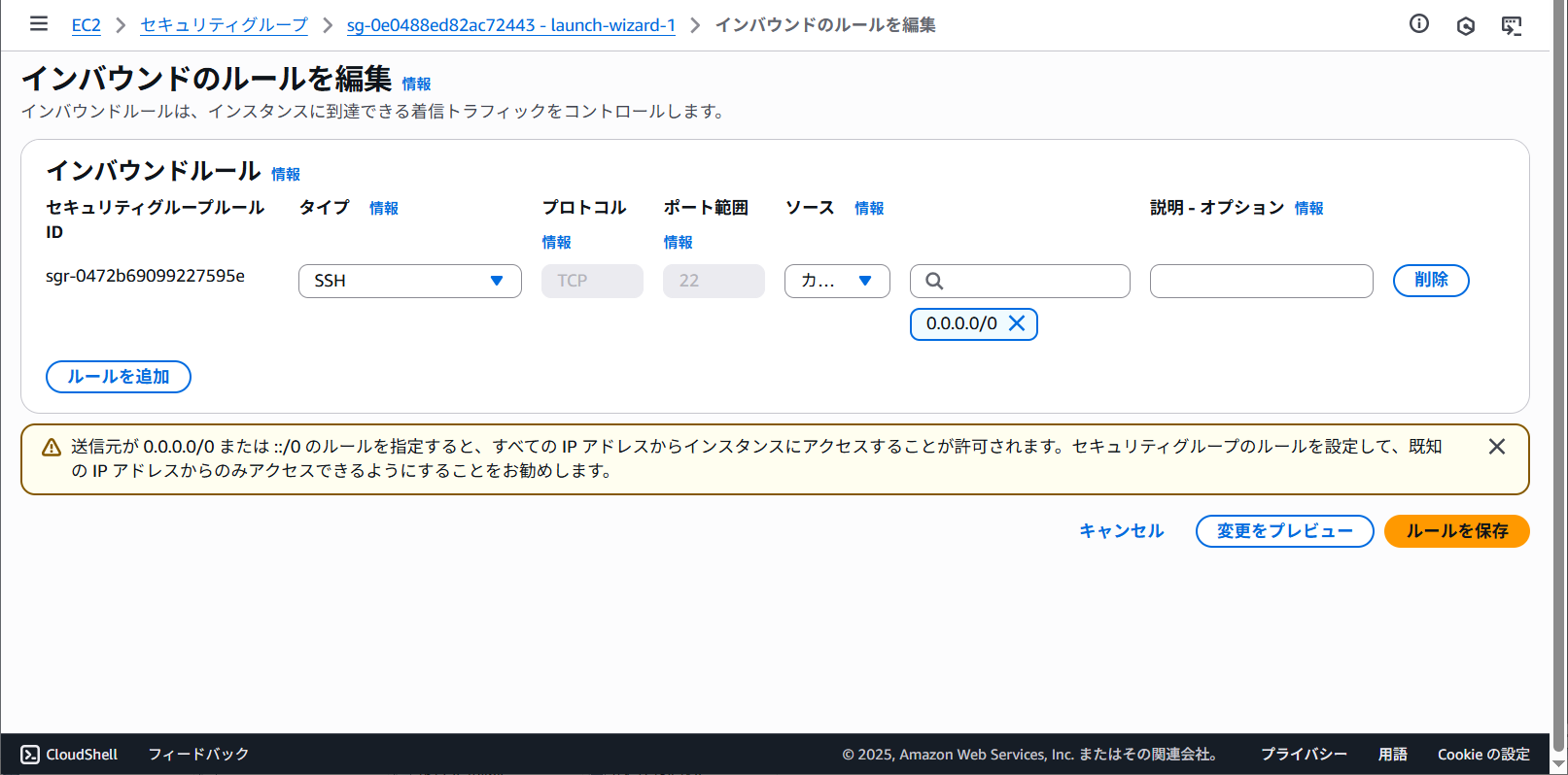 インバウンドルールが追加されました。