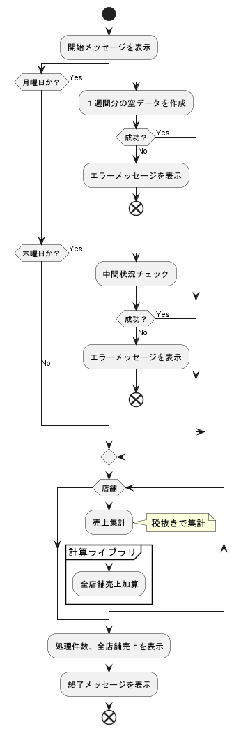 if (月曜日か?) then (Yes)