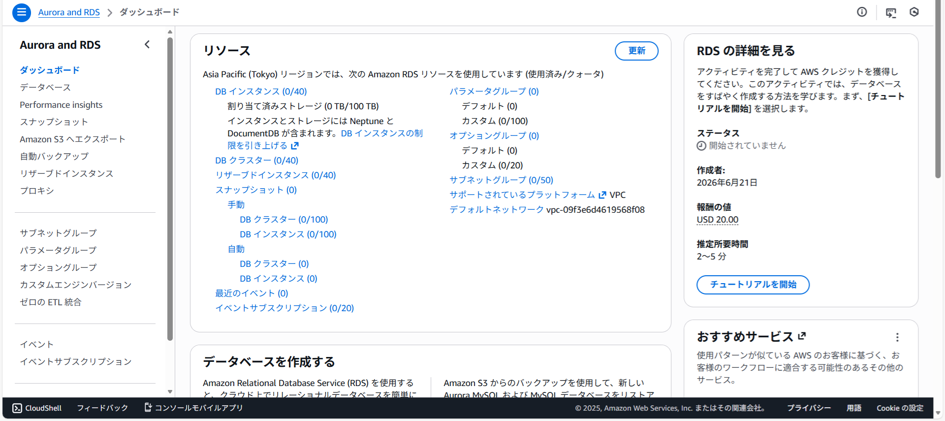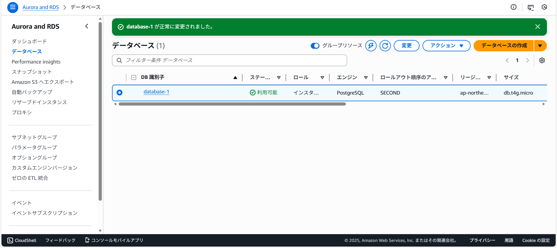 AWS RDSを開きます。