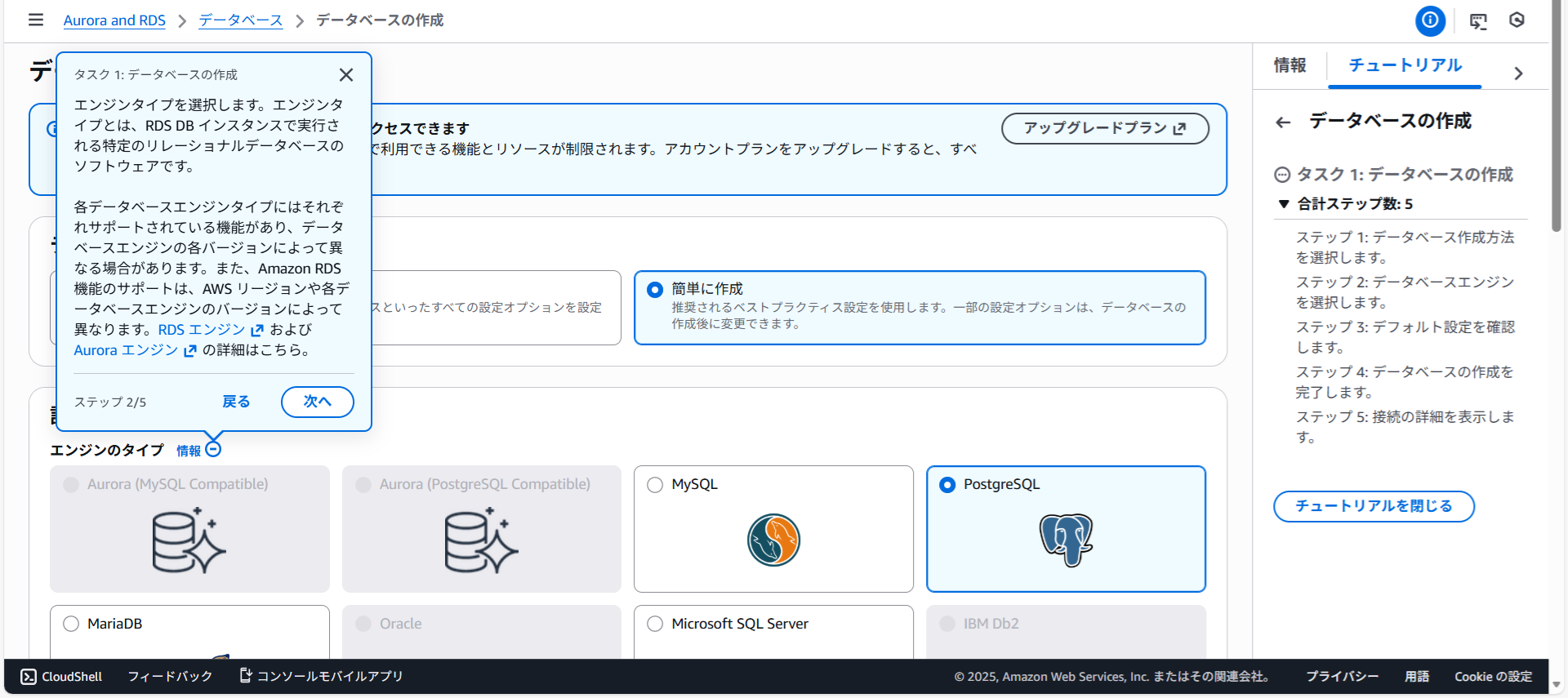 RDSを開きチュートリアルを開始をクリックします。